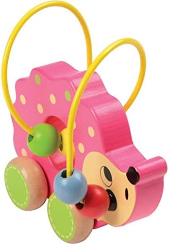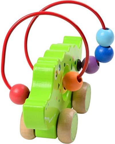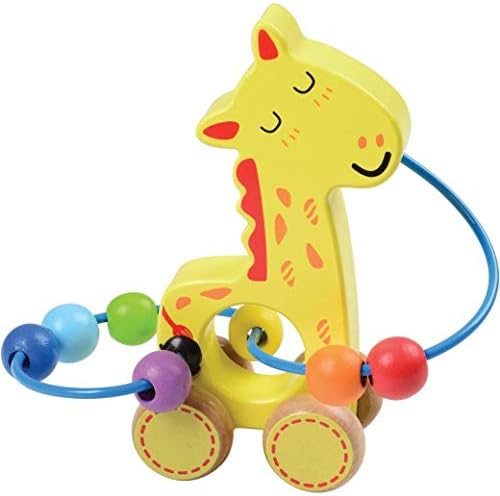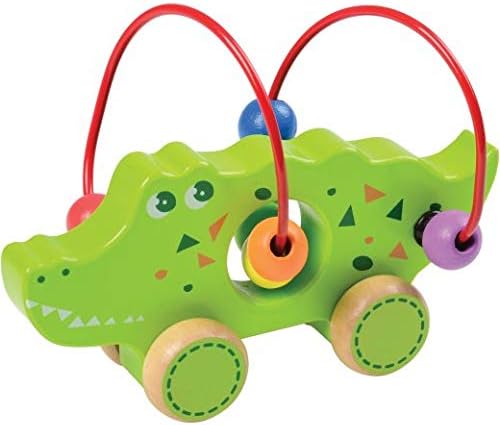 Move the colourful beads around the brightly coloured animals for early fine motor exploration or roll this set of 3 wooden animals and hear the beads add sound to floor play. The alligator measures 6" W. and the giraffe stands 5. 5" H.