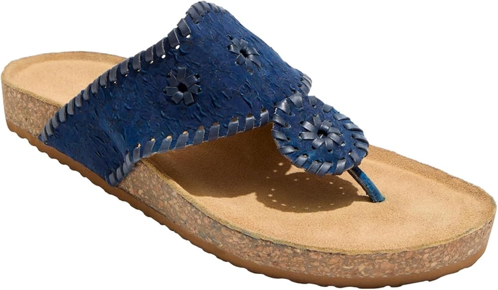 Let your classic style leave an astounding impression wearing the Jack Rogers Atwood Casual Sandals - Cork Sandals. Featuring signature whipstitch detailing on the toe-post strap, the slip-on footwear has leather upper and lining construction with flexible molded footbed. Open round toe silhouette. EVA midsole and rubber outsole.