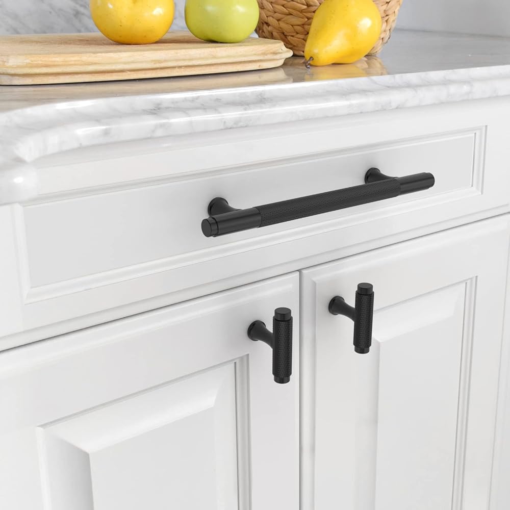 Asidrama 10 Pack Knurled Brushed Satin Nickel Kitchen Cabinet Knobs Dresser Knobs Drawer Knobs Single Hole Cabinet T Bar Pull Handles for Kitchen Wardrobe Cupboard