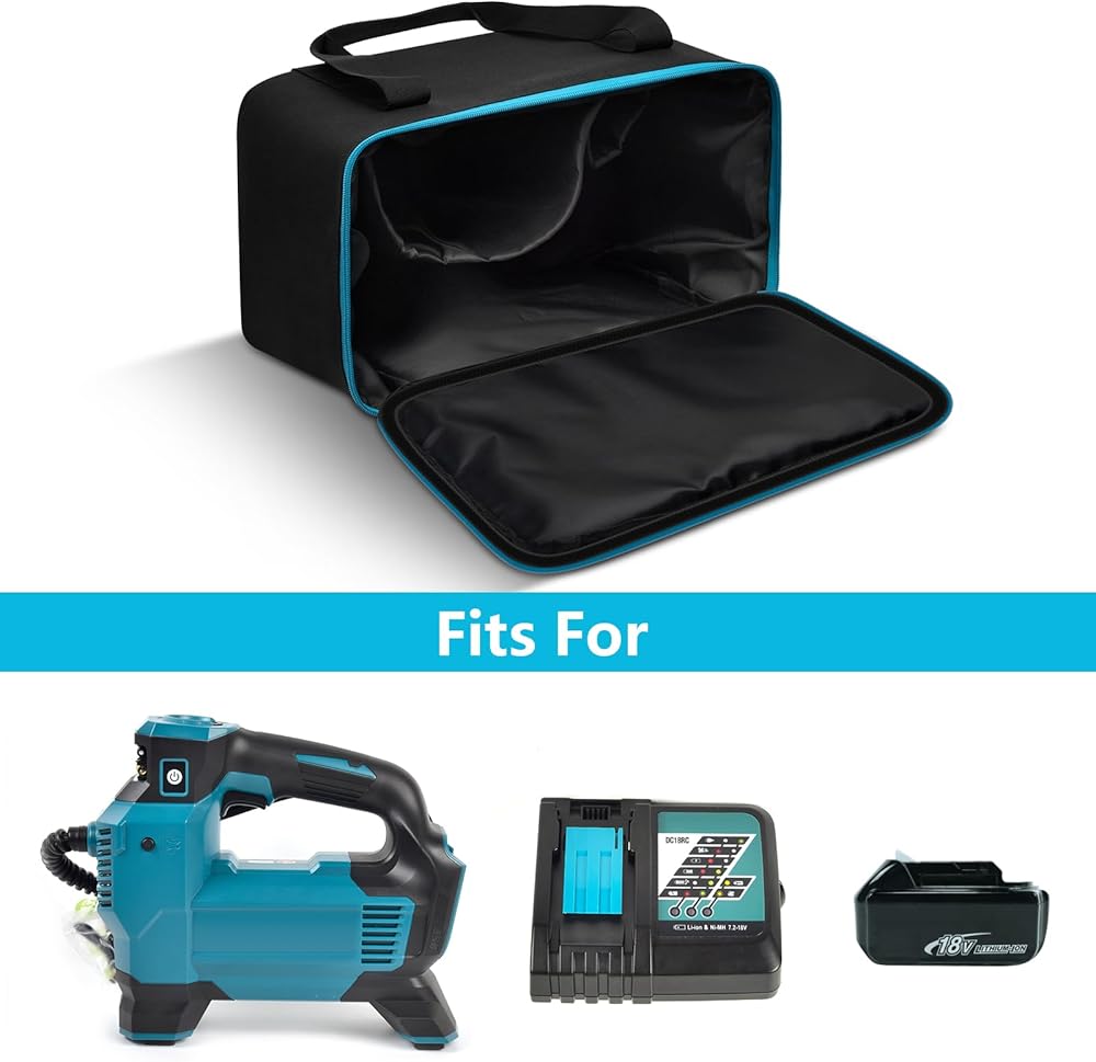 سعة كبيرة: مضخة هواء لحقيبة الحقيبة القابلة للنفخ متوافقة مع مضخة هواء ماكيتا لضاغط الهواء المحمول، علبة منفاخ إطارات ماكيتا يمكن أن تستوعب مضخة هواء للسيارة والإكسسوارات. البعد الخارجي: 12.5*8*8.5 بوصة. (ملاحظة: علبة ضاغط الهواء المحمولة 18 فولت فقط، لا تشتمل على مضخة الهواء والملحقات)