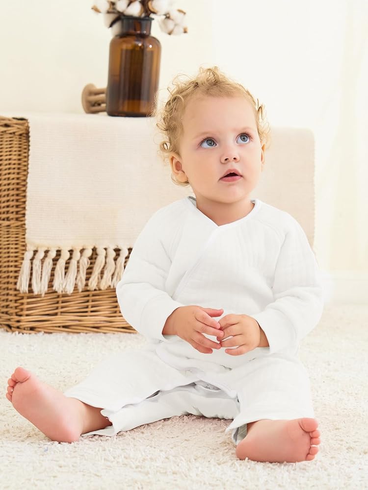 زر داخلي لمزيد من الأمان: تصميم الزر الداخلي يحافظ على البذلة محكمة وفي مكانها، مما يمنع النسيج الداخلي من التحرك ويضمن بقاء طفلك ملفوفًا بشكل مريح.