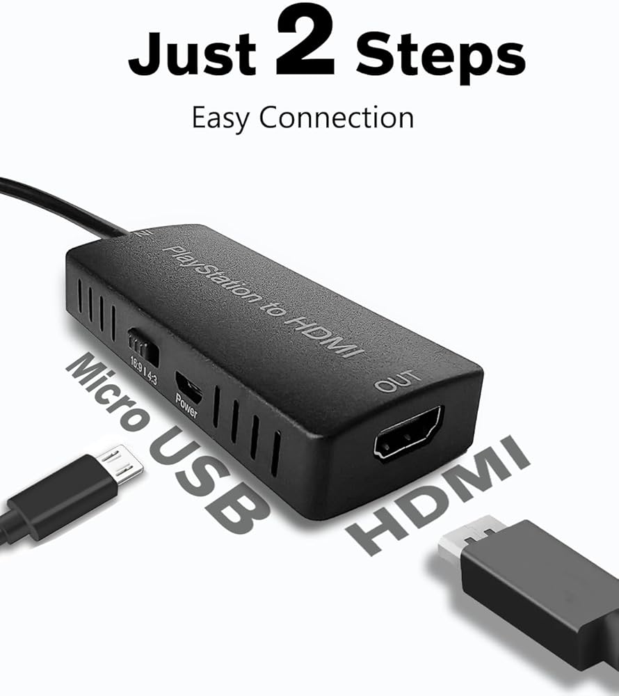 Switch between HDMI16:9 and4:3 output effortlessly, adapting to your preferred display configuration. Transform your gaming experience with our ps2 to hdmi adapter.