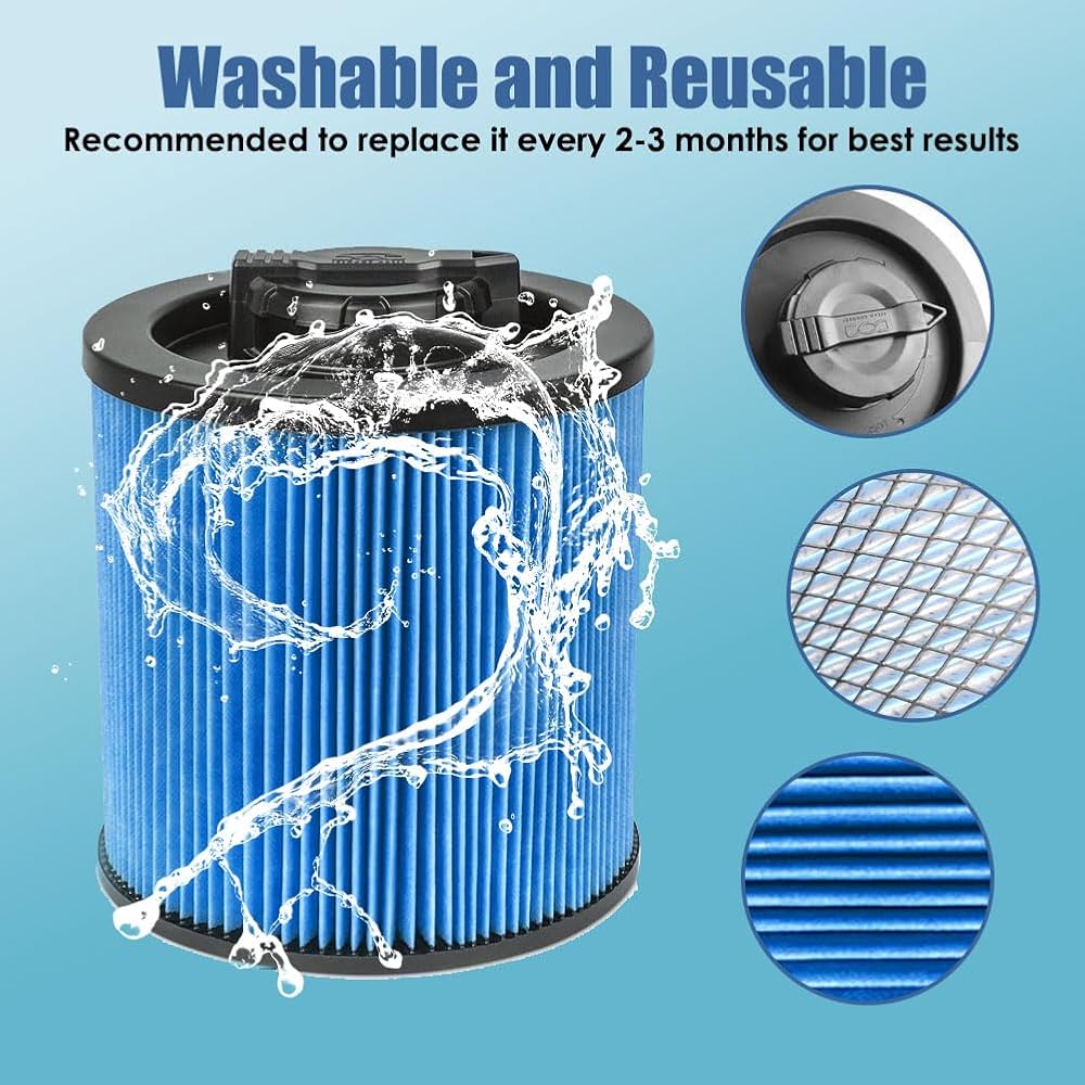 【قابل للغسل وإعادة الاستخدام】وفر تكاليف الاستبدال باستخدام فلتر HEPA DXVC6912 القابل للغسل وإعادة الاستخدام لشركة DeWalt. اشطفه تحت الماء وجففه بالهواء بالكامل قبل إعادة تركيبه، مما يضمن أداء طويل الأمد وهواء منعش في منزلك أو مكتبك.