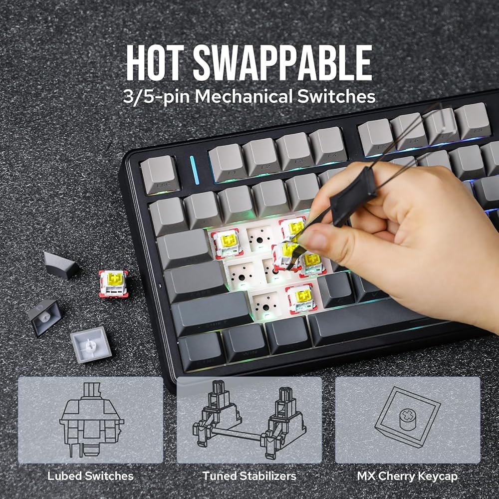لوحة مفاتيح الألعاب اللاسلكية EPOMAKER X Aula F99 PRO، لوحة مفاتيح مخصصة قابلة للتبديل السريع، لوحة مفاتيح ميكانيكية 2.4 جيجا هرتز/Type-C/BT5.0 مع بطارية 8000 مللي أمبير في الساعة، لوحة مفاتيح ألعاب بإضاءة خلفية RGB (متدرج أسود)