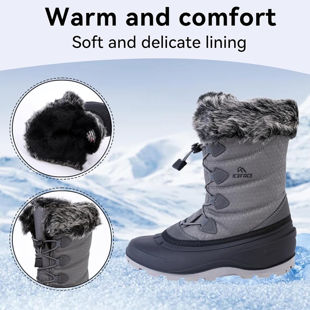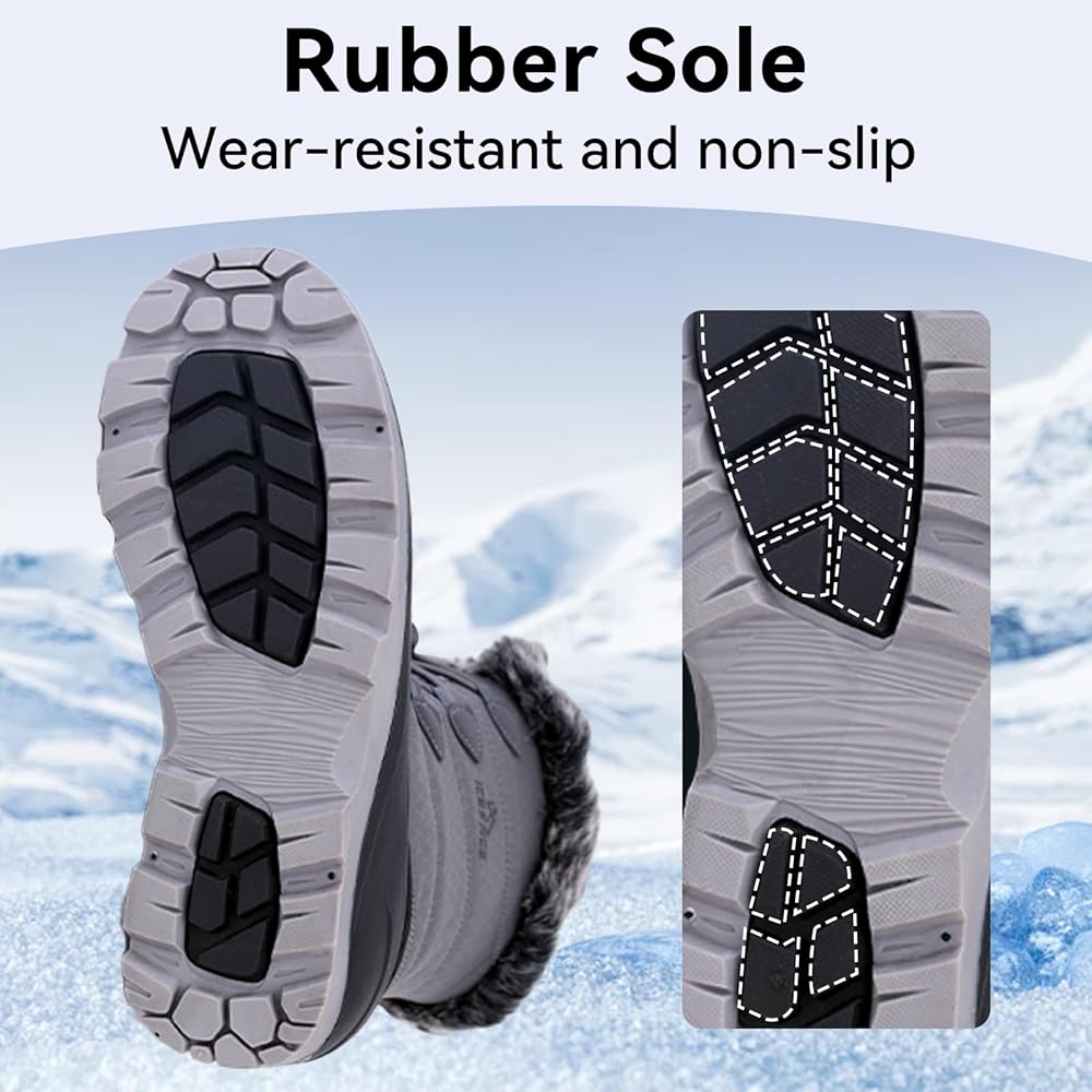حماية مقاومة للماء: تتميز أحذية الثلج النسائية بتصميم مقاوم للماء، مما يضمن بقاء قدميك جافة ومرتاحة في الظروف الرطبة والثلجية.