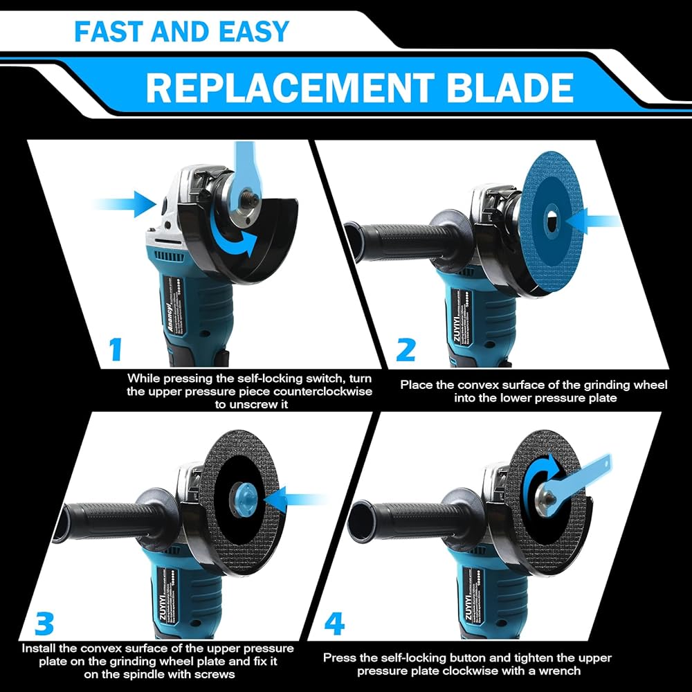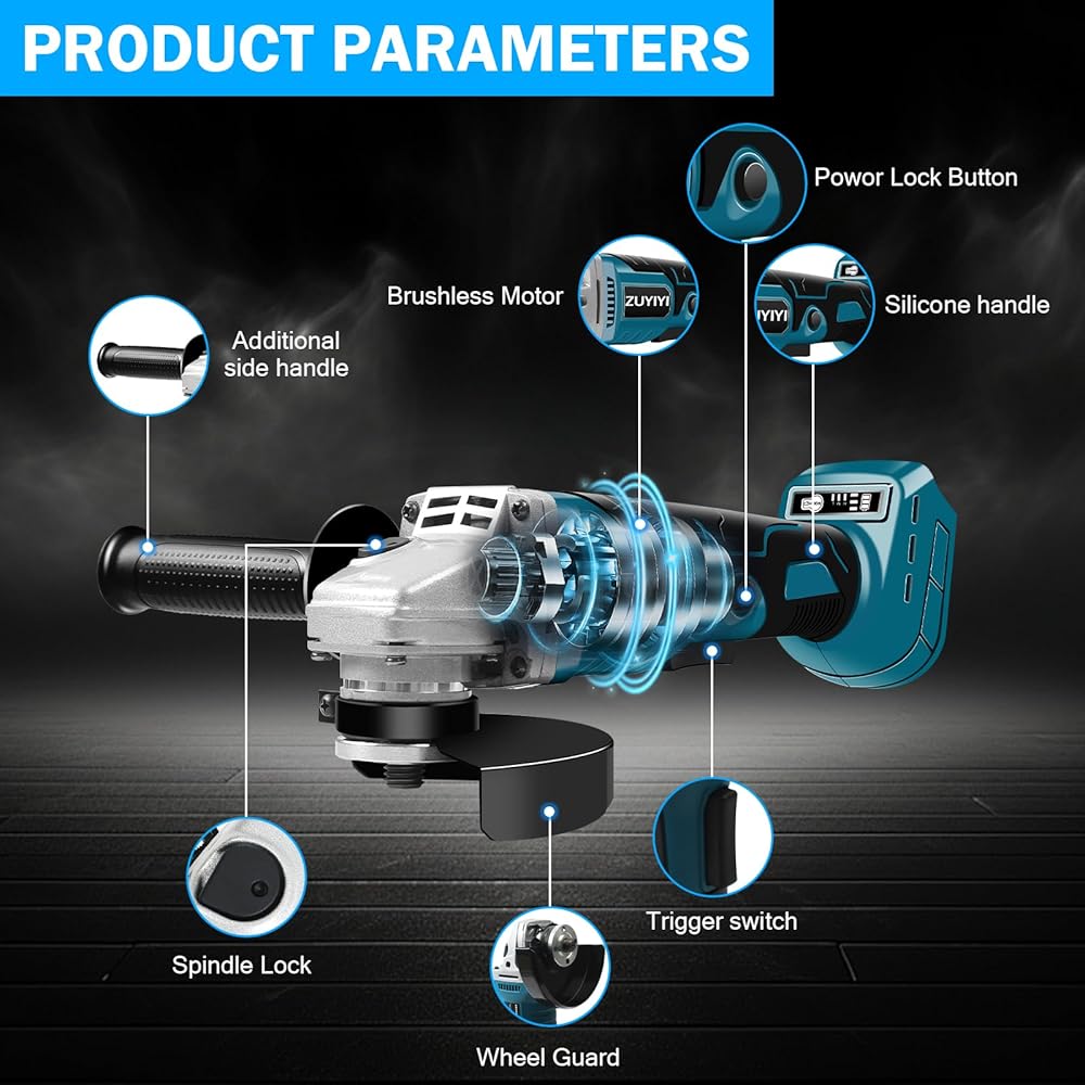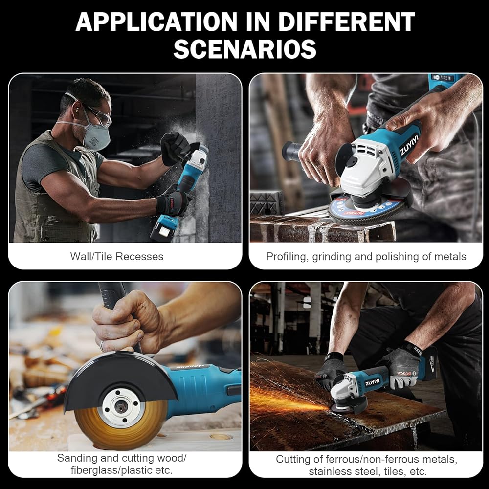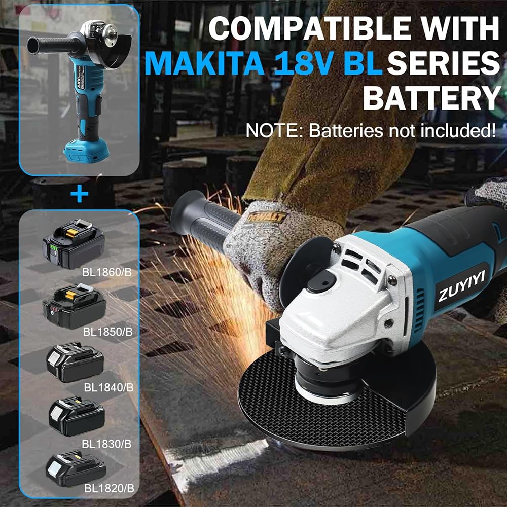 【Compatibility and Convenience】The ZUYIYI Cordless Angle Grinder is designed to be compatible with Makita BL 18V lithium-ion batteries, including models like BL1830, BL1840, BL1850, BL1850B, BL1860, and BL1860B. Say goodbye to tangled cables and enjoy the freedom to use it anywhere, indoors or outdoors. (Note: Batteries are not included, tools only!!!)
