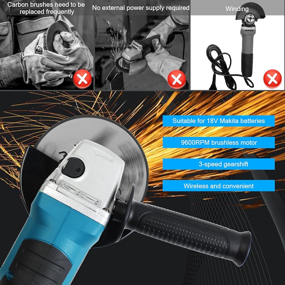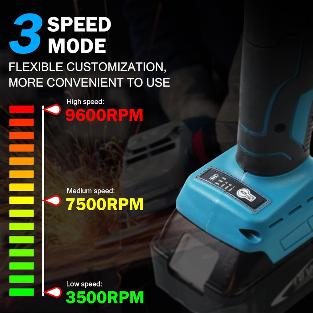 【Unleash the Power】Equipped with a 9600 RPM brushless motor, our electric angle grinder offers 300% longer life, 100% higher output, 150% less wear, and 60% less energy consumption than conventional motors. Experience more kinetic energy with less power consumption, making your work effortless every time