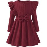 رقبة دائرية، تصميم مكشكش: توفر الرقبة المستديرة مقاسًا مريحًا، بينما تضيف الأكمام الطويلة المضلعة المكشكشة لمسة مرحة وجميلة إلى المظهر العام، مما يجعل فتاتك أكثر سحرًا خلال موسم الاحتفالات هذا.