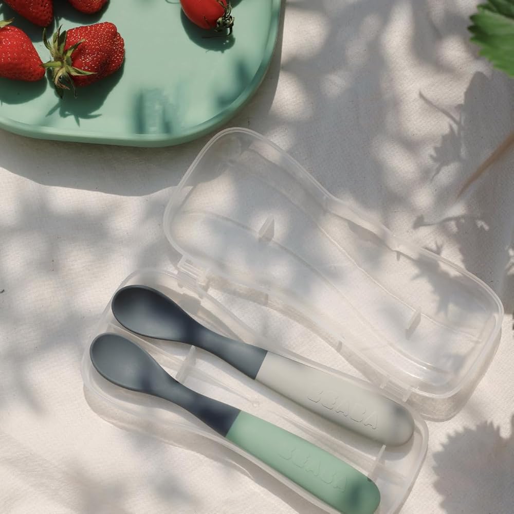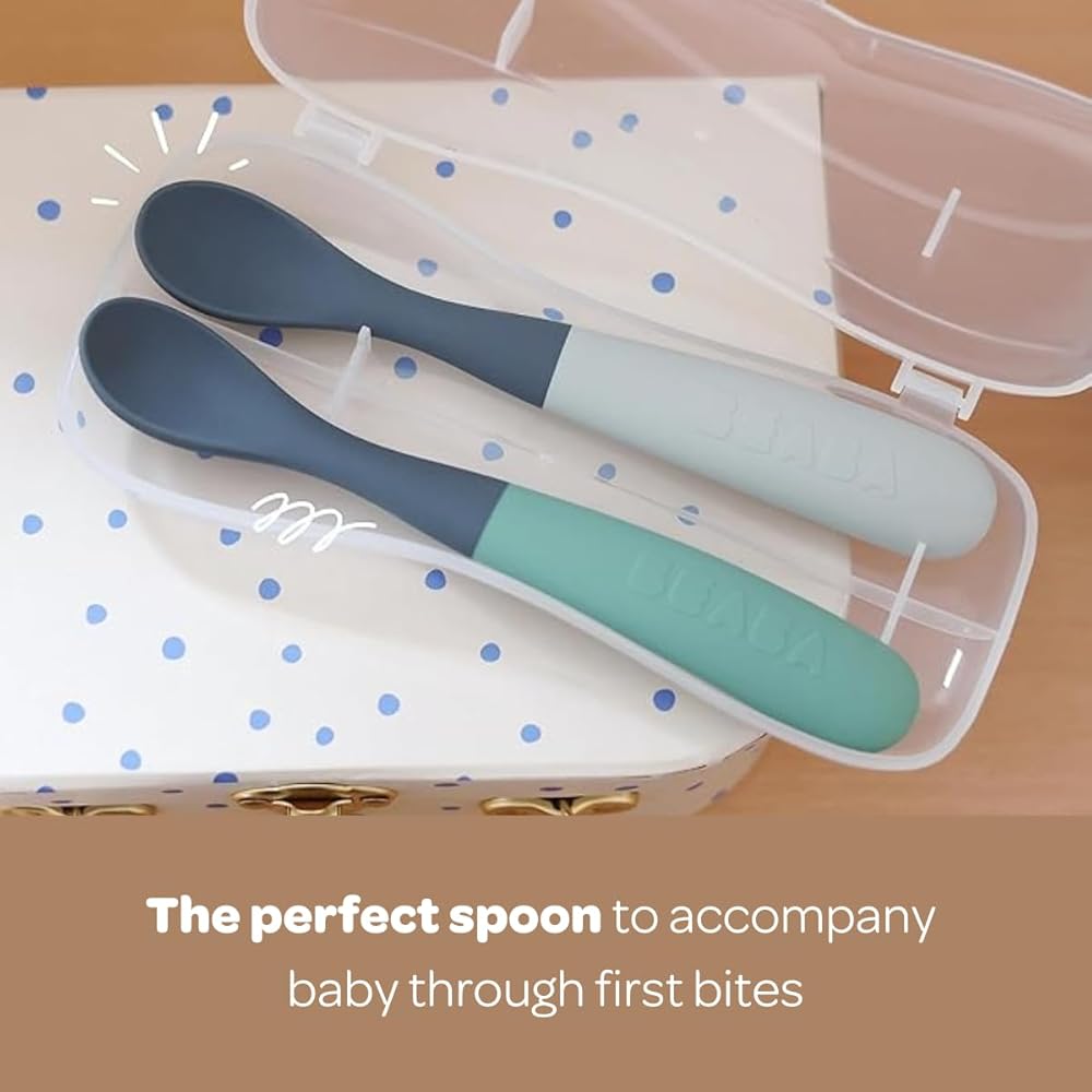 مجموعة ملاعق الأطعمة الأولى للأطفال من بيابا مع حقيبة سفر، ملاعق أطفال من السيليكون بلونين، مستلزمات الطفل الأساسية، ملاعق الأطفال، مجموعة السفر، هدايا الأطفال، معدنية