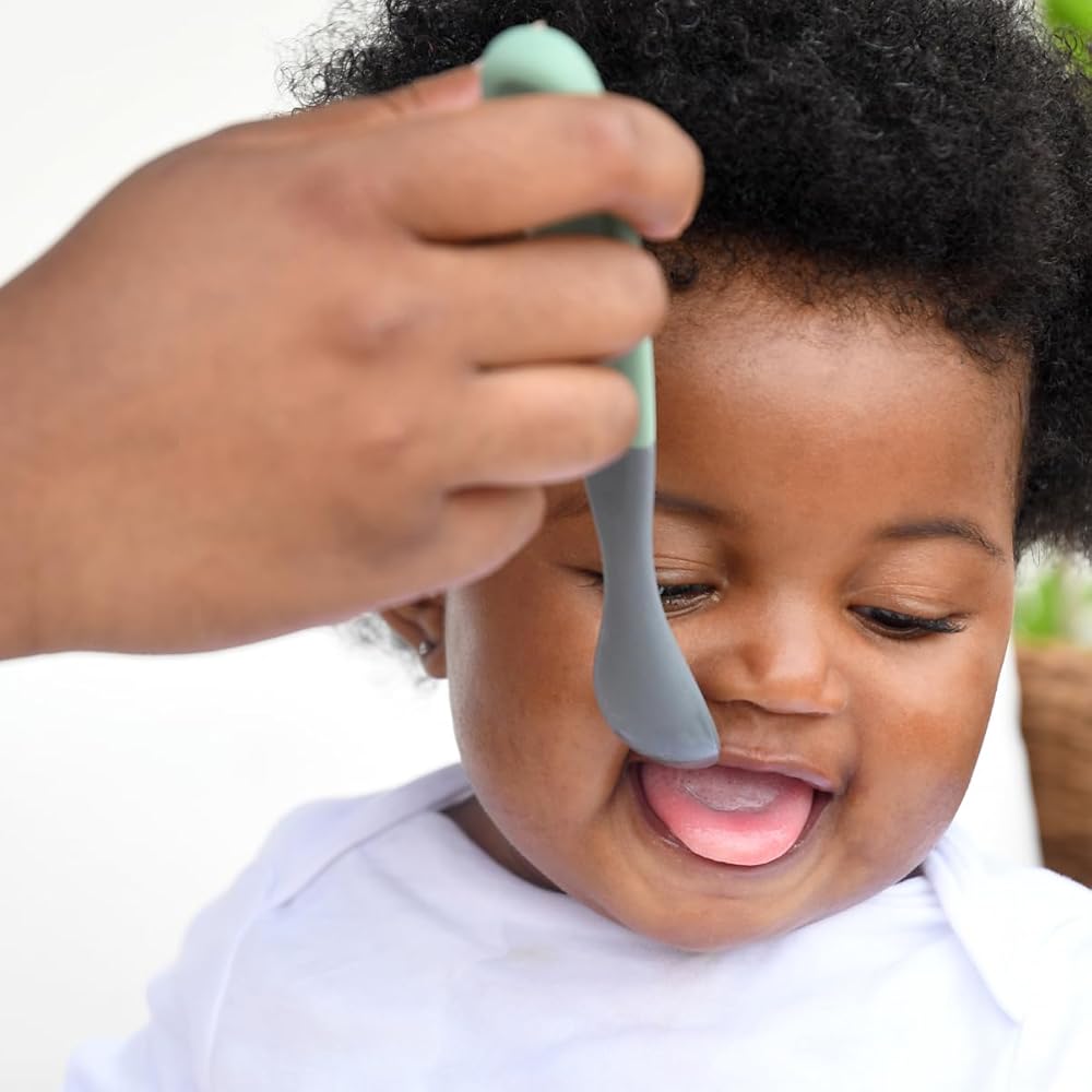 مجموعة ملاعق الأطفال المصنوعة من السيليكون للمرحلة الأولى للأطفال من عمر 4 أشهر فما فوق. مادة السيليكون الناعمة: لتجنب تهيج لثة الأطفال.