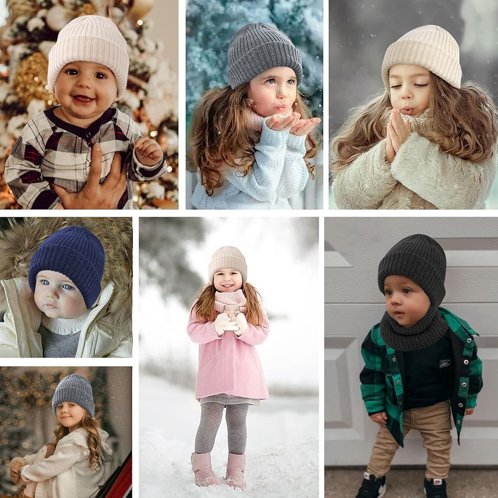 ملاءمة رائعة: تتميز قبعات الشتاء للأطفال الصغار بمرونة جيدة ويمكن استخدامها مع نمو طفلك. مجموعة قبعة ووشاح دافئة للشتاء تناسب الأطفال الصغار والأطفال الصغار، مثالية للأطفال من سن 0 إلى 2 سنوات و2-8 سنوات. قبعة صغيرة ووشاح مطاطي سيحافظ على دفء الفتيات والأولاد في الطقس البارد.