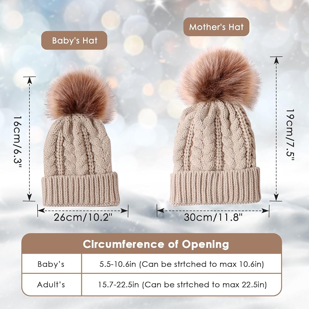 Quality Material - Our mom and baby matching hats are crafted from premium knitting yarn, soft and stretchy to wear. Its knitted material keeps your head and ears warm and cozy this fall/winter, maximizes the amount of warm air held inside the hat for all-day warmth and comfort.