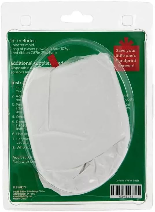 Includes 1 plaster mold, 1 3.8 oz bag of plaster powder, and 1 red ribbon