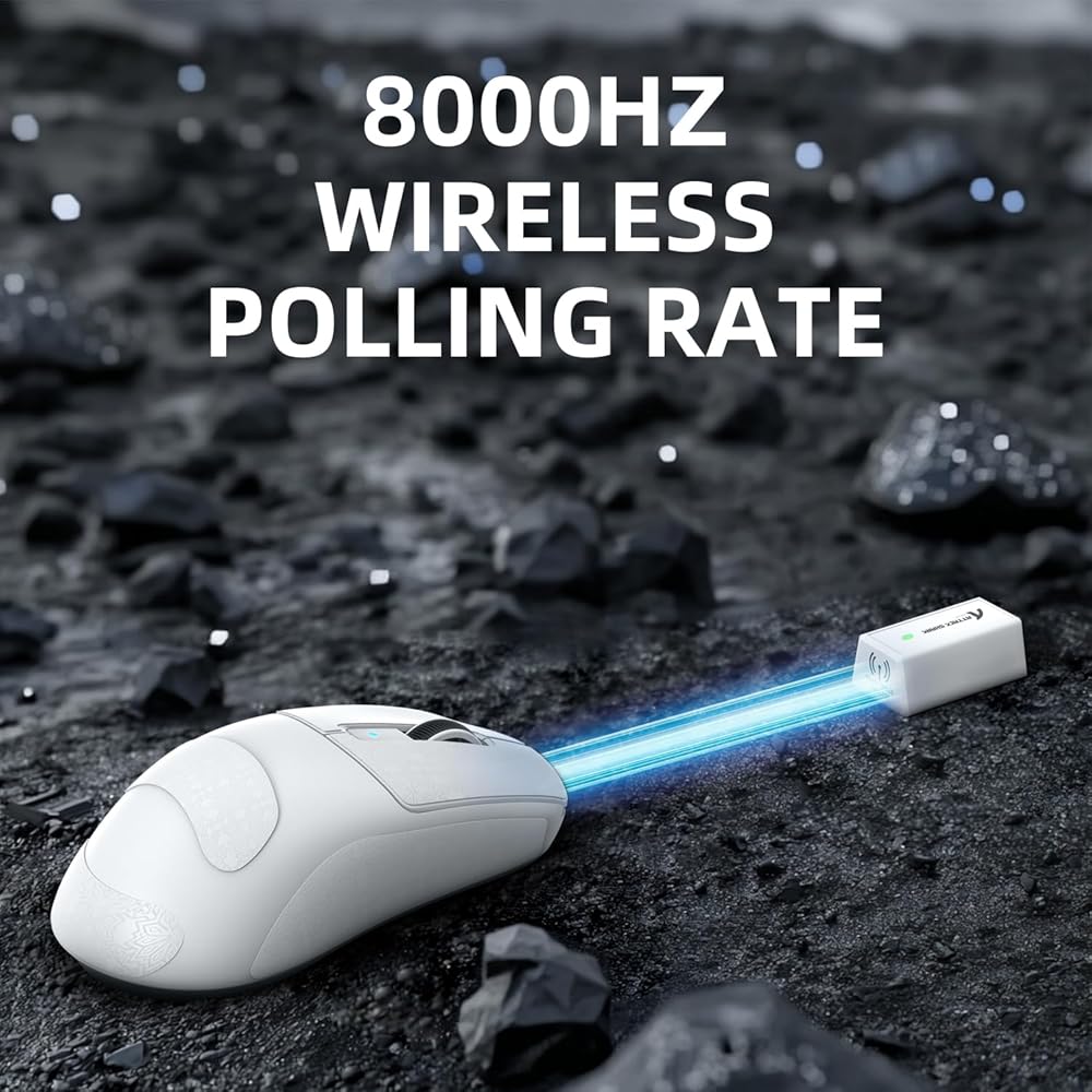 تجربة سرعة رائدة حقيقية تبلغ 8 كيلو هرتز: توفر تقنية SMART SPEED WIRELESS المطورة ذاتيًا نقلًا أسرع للبيانات وزمن وصول أقل للنقرات، مع جهاز استقبال 8K مخصص، وجهاز استقبال صغير 8K مع إخراج عالي الكثافة، ومتوسط تأخير رئيسي يبلغ 0.3993 مللي ثانية، أسرع من الحل العام الموجود على السوق 1.8230 مللي ثانية.