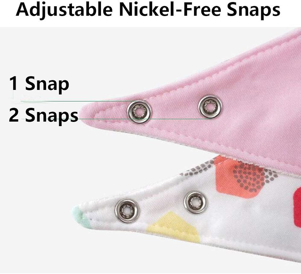 صدريات قابلة للتعديل مع أزرار كبس. تأتي صدريات باندانا مع مشبكين قابلين للتعديل وخاليين من النيكل للأطفال الذين تتراوح أعمارهم بين 3 إلى 24 شهرًا.