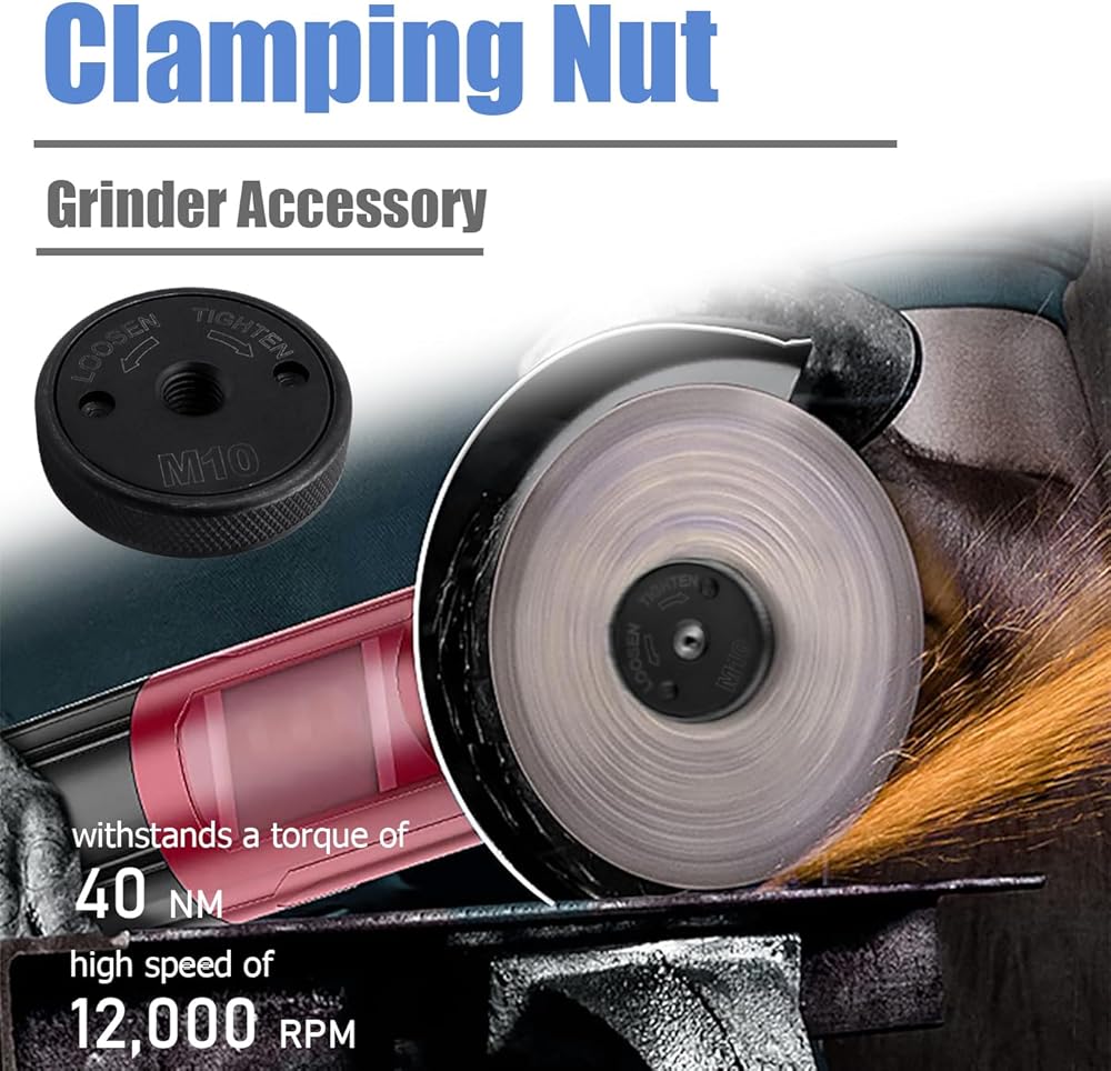 ◆ M10 Mount Thread Angle Grinder Clamping Nut - This is a heavy-duty retaining nut for all angle grinders with M10 spindles. It offers fast and frustration-free accessory changes on your angle grinder.