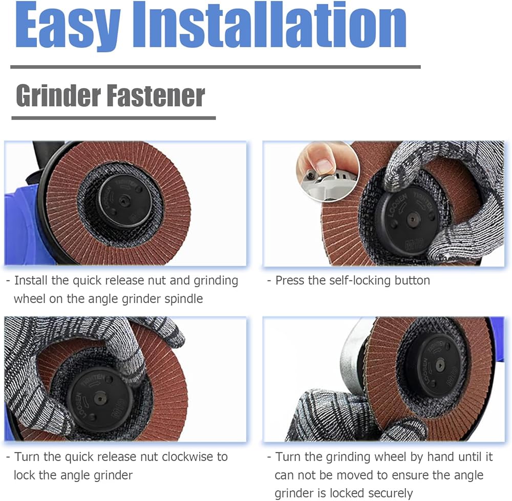 ◆ Self-locking Design - makes it easy to install and use in seconds without a wrench tool, allows you to quickly install and remove angle grinder accessories.