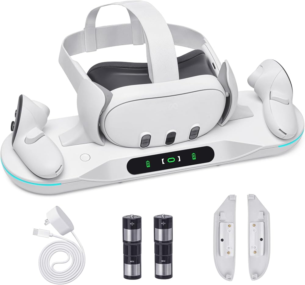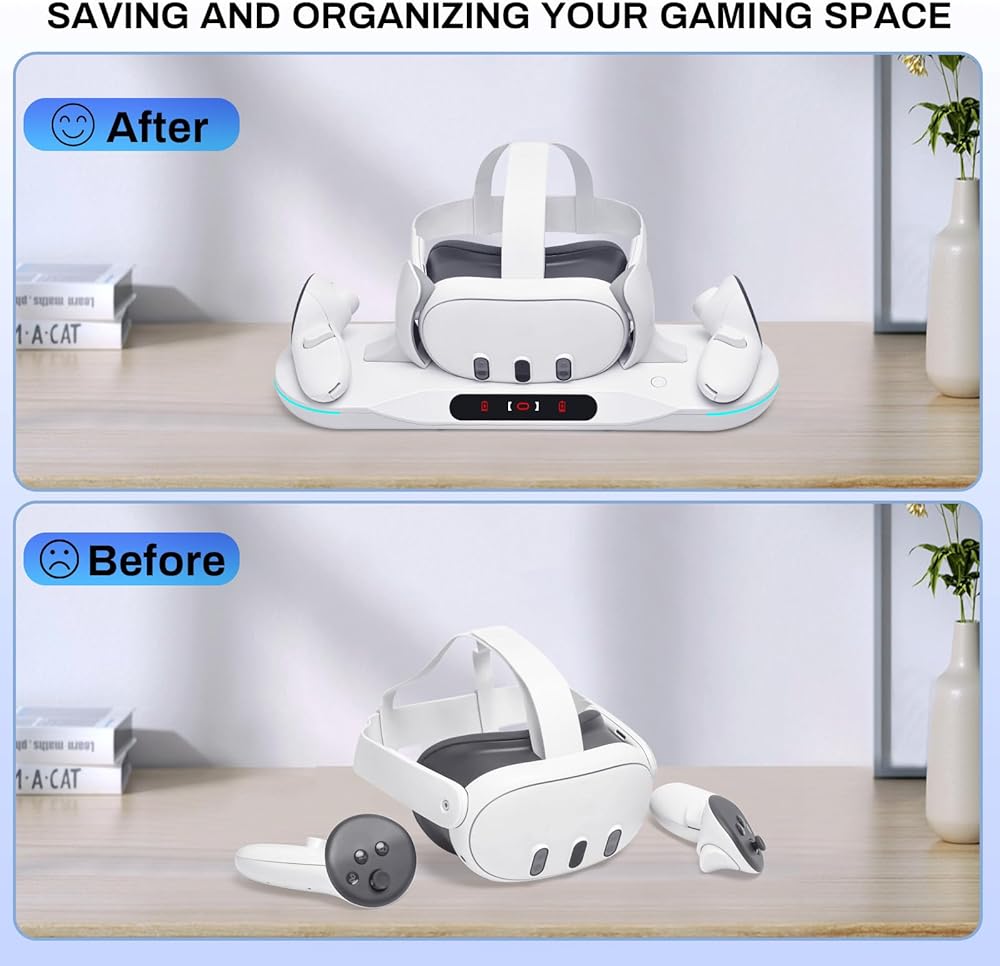 【Stable and Safe Charging Performance】: The charging stand for Meta Quest 2 offers over-voltage protection, under-voltage protection, overload protection, and short circuit protection, providing stable and safe charging for your VR headset and touch controllers. The product features a novel appearance design, a unique shape, and high practicability. It is the preferred accessory product for VR players.