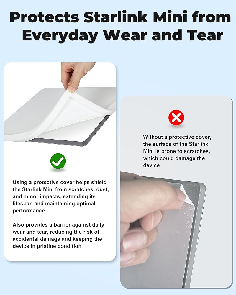 الحماية القصوى: توفر حافظة ستارلينك ميني المصنوعة من السيليكون حماية من الدرجة الأولى لطبق ستارلينك ميني الخاص بك. مصمم بمقاس مريح، فهو يحمي من الخدوش والسقوط والارتداء اليومي، مما يضمن بقاء Starlink Mini الخاص بك في حالته الأصلية.
