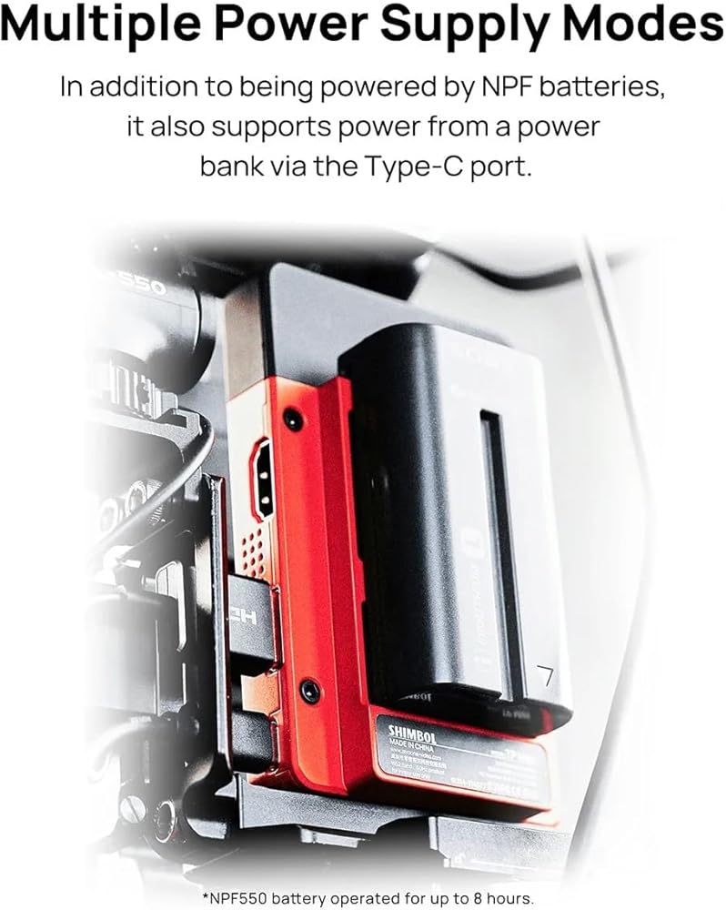 • 【أوضاع إمداد طاقة متعددة】: بالإضافة إلى أنها تعمل ببطاريات NPF (بطاريات NPF غير متضمنة)، فإنها تدعم أيضًا الطاقة من بنك الطاقة عبر منفذ النوع C. تصميم بدون مروحة من أجل الهدوء. تخلص من تصميم المروحة التقليدية واعتمد حلاً منخفض الطاقة لتجنب تداخل الضوضاء.