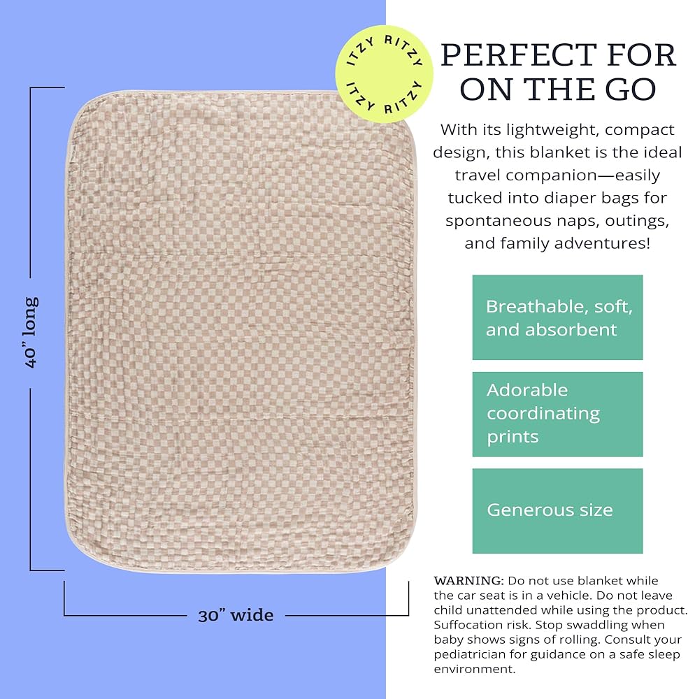 • PERFECT FOR ON-THE-GO FAMILIES: Whether you're strolling through the park or on a road trip, Itzy Ritzy's baby blanket is your portable cozy companion. This nursery blanket's lightweight design makes it easy to carry while keeping your little one comfy wherever you go.
