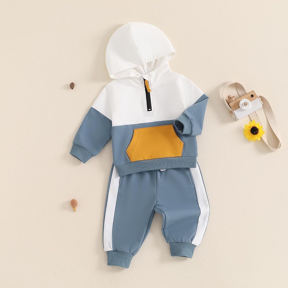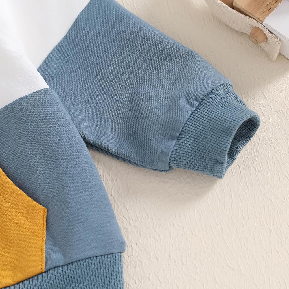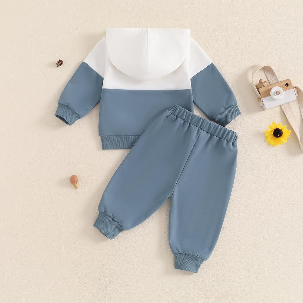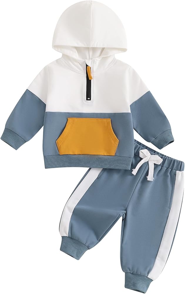 تشمل العبوة: قطعة واحدة من سويت شيرت بقلنسوة بأكمام طويلة للأطفال الصغار + قطعة واحدة من بنطال العرق للأطفال الصغار. أطقم السترات والبنطلونات الشتوية دافئة جدًا ومريحة للارتداء طوال اليوم