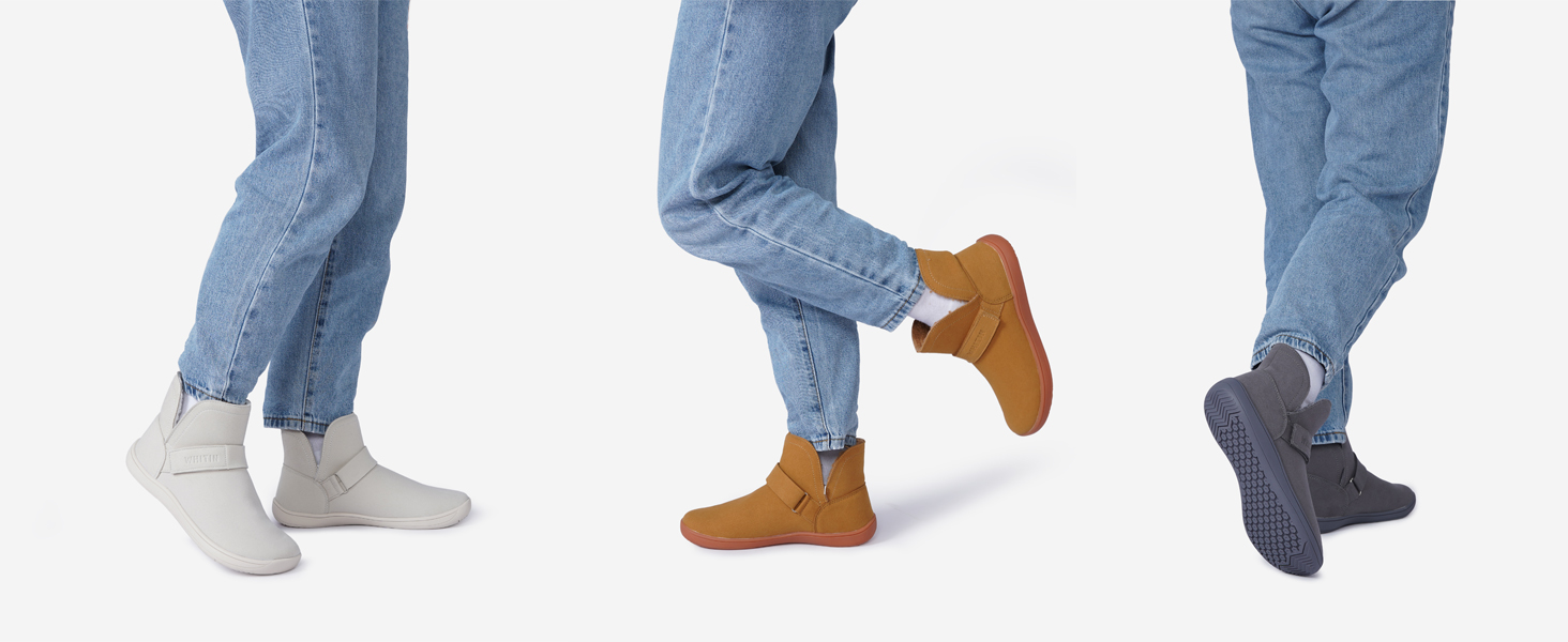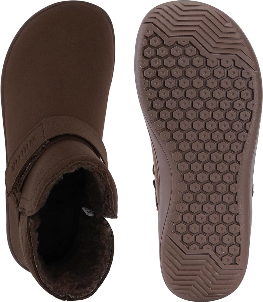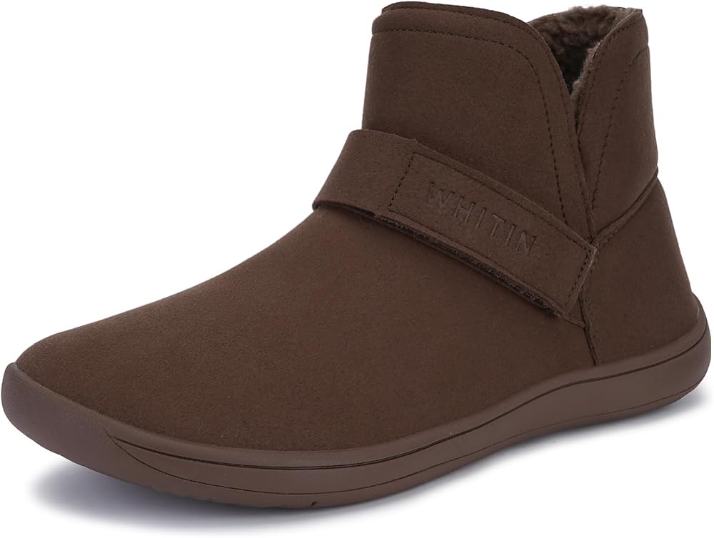 WHITIN الحد الأدنى أحذية الكاحل حافي القدمين للنساء أزياء الشتاء الدافئ المشي أحذية الثلوج حجم 7 واسعة اصبع القدم مربع صفر قطرة وحيد للماء أحذية رياضية رمادي داكن