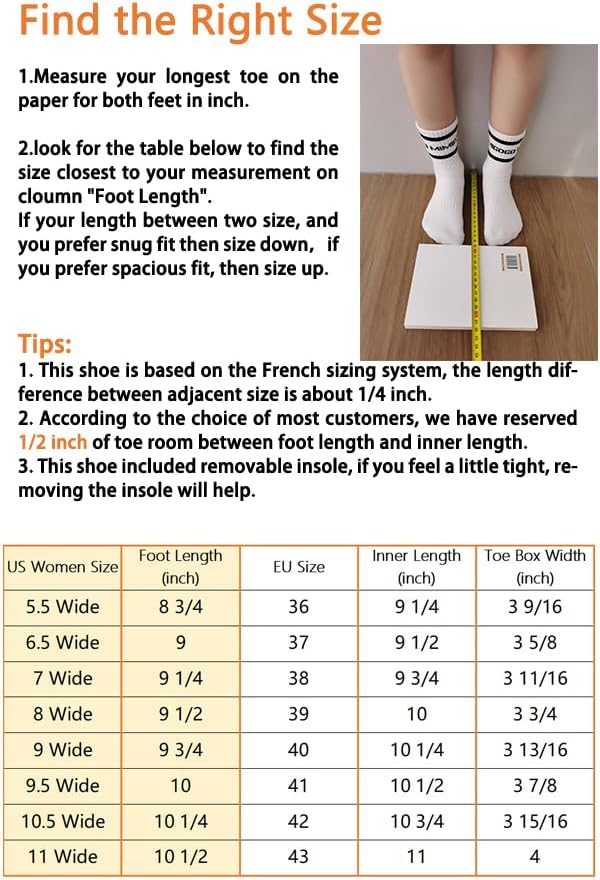 وحدة الأحجام الولايات المتحدة وكندا 4 4.5 5 5.5 6 6.5 7 7.5 8 8.5 9 9.5 10 10.5 11 11.5 12 المملكة المتحدة 2 2.5 3 3.5 4 4.5 5 5.5 6 6.5 7 7.5 8 8.5 9 9.5 10 أوروبا 35 35 35-36 36 36-37 37 37-38 38 38-39 39 39-40 40 40-41 41 41-42 42 42-43 بوصات 8.2 8.3 8.5 8.8 8.9 9.1 9.3 9.4 9.5 9.7 9.9 10 10.2 10.3 10.5 10.7 10.9 سنتيمتر 20.8 21.3 21.6 22.2 22.5 23 23.5 23.8 24.1 24.6 25.1 25.4 25.9 26.2 26.7 27.1 27.6