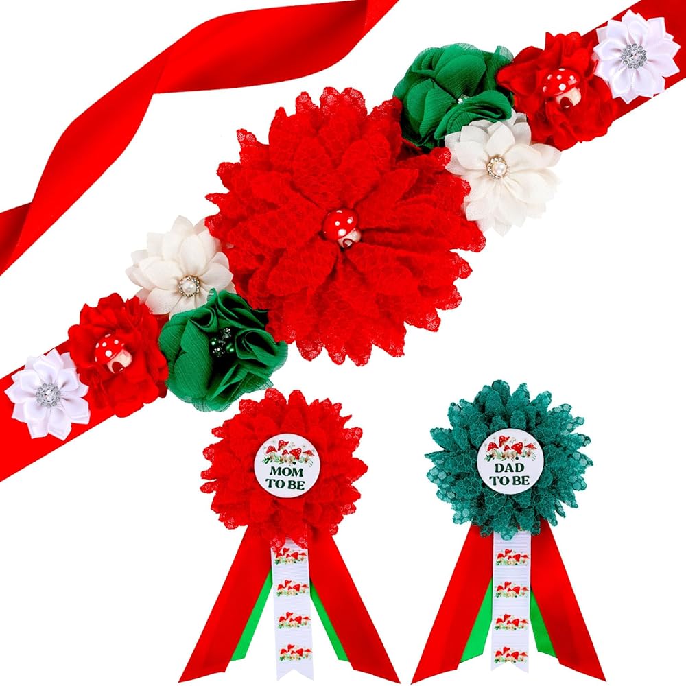 Wide Applications: This red and green maternity sash and corsage pins set is suitable as a gift for expectant parents. The mom and dad wear maternity sash at baby shower. The baby shower decorations will make a family memory together for everyone.