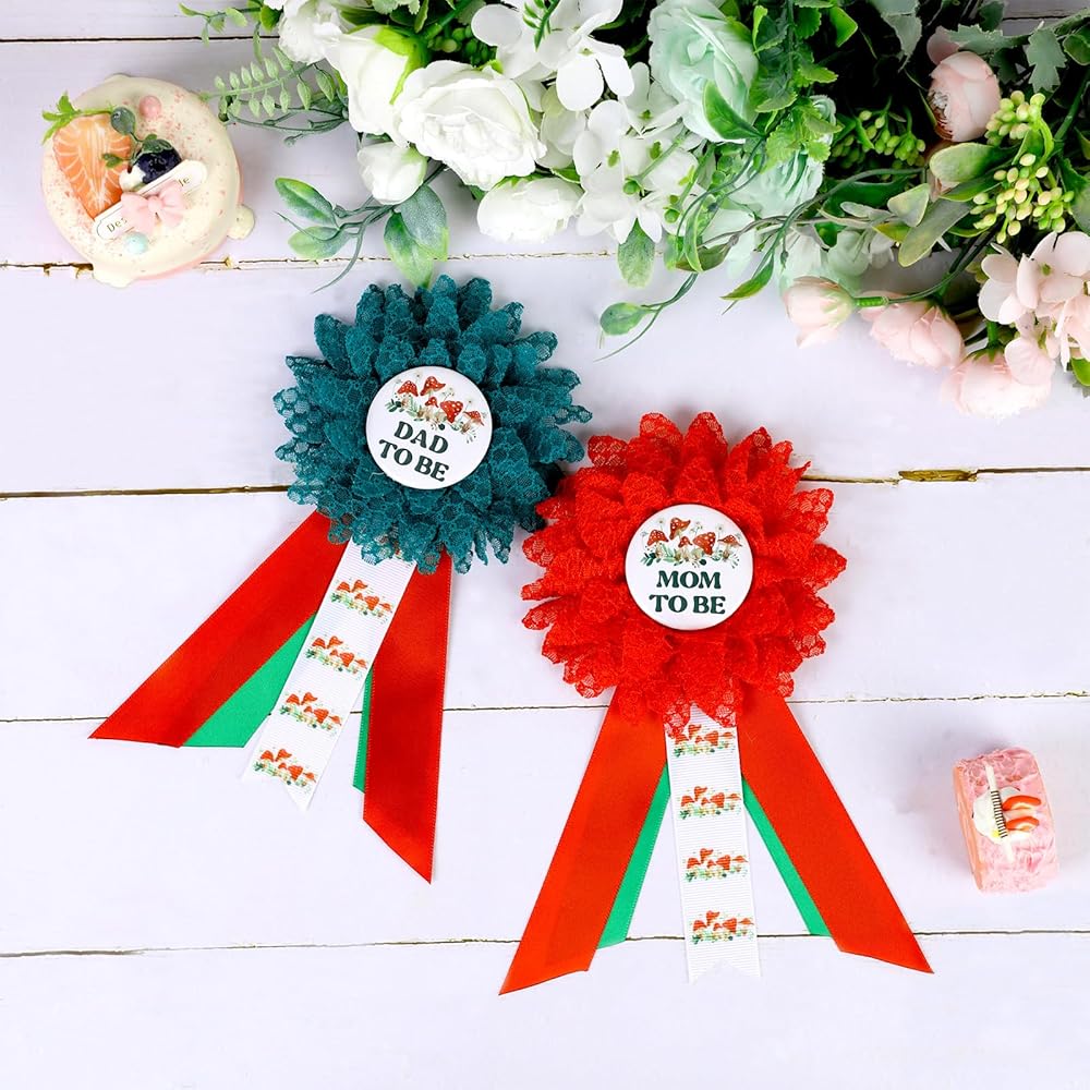 Mushroom Maternity Sash & Corsage Set: Includes 1 beautifully designed mushroom theme maternity sash, 1 mom to be corsage pin and 1 dad to be corsage pin. The exquisite maternity sash is pre-assembled and ready to use.