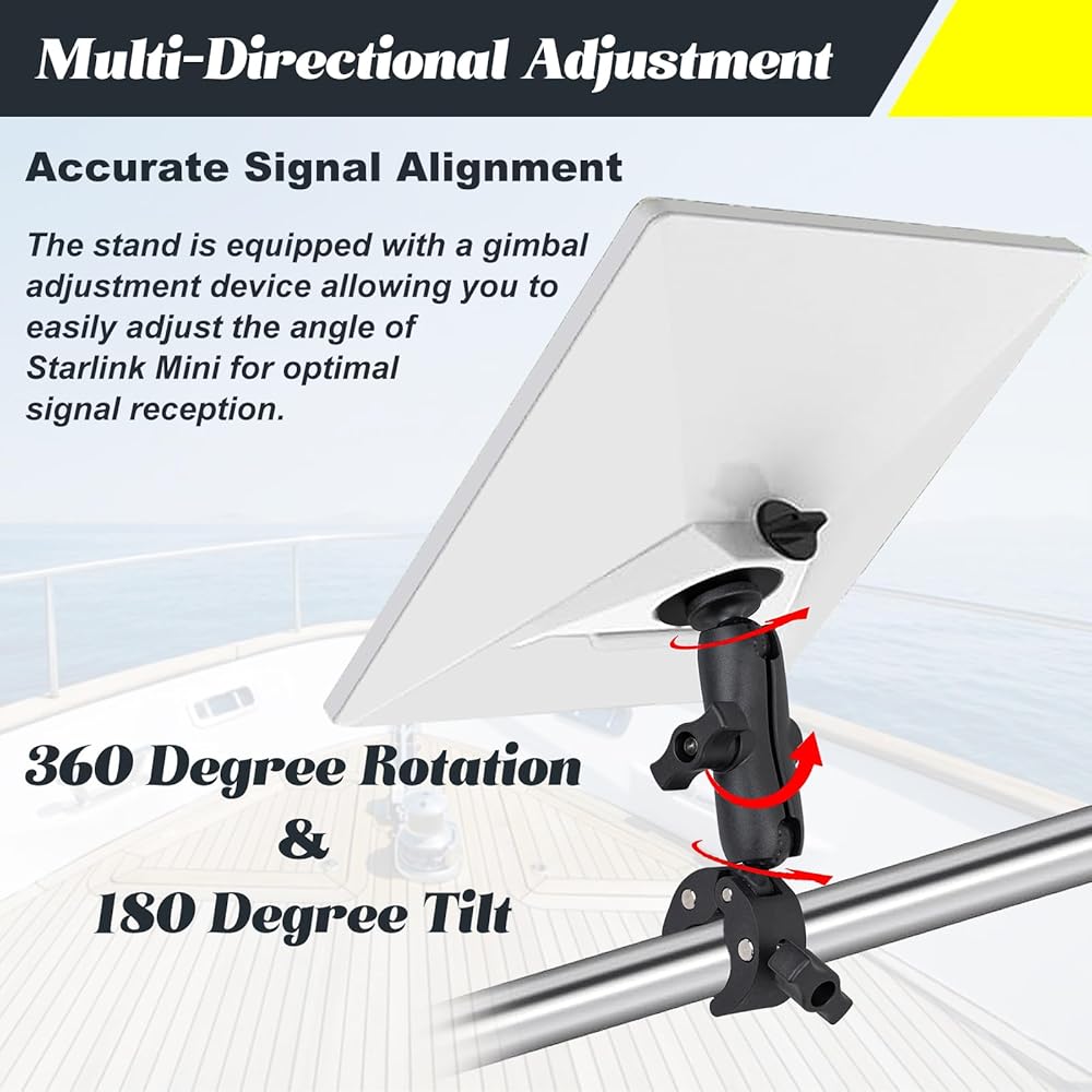 TERPINK حامل مشبك قابل للتعديل ومحول تركيب متوافق مع ملحقات Starlink Mini مشبك زاوية قابل للتعديل من سبائك الألومنيوم قوس محول لRV/اليخت/التخييم/الدرابزين/رف السقف/القطب (أسود)