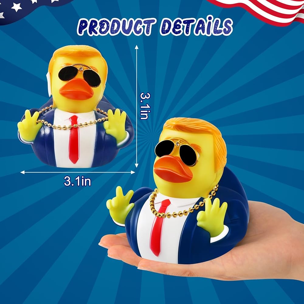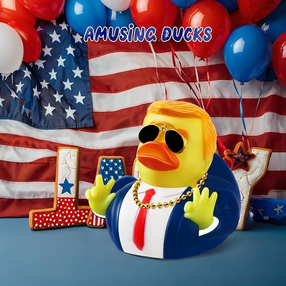 البطة المسلية: عندما تظهر بطة ترامب، فإن هذه البطة المطاطية للبط لا بد أن تخلق المناقشات والضحك بين الأصدقاء والزملاء والعائلة. سواء كنت تحب رئيسنا السابق الفريد أم لا، فإن هذه البطة المضحكة المبتكرة التي تعرض شخصية أمريكية مميزة هي بداية رائعة للمحادثة