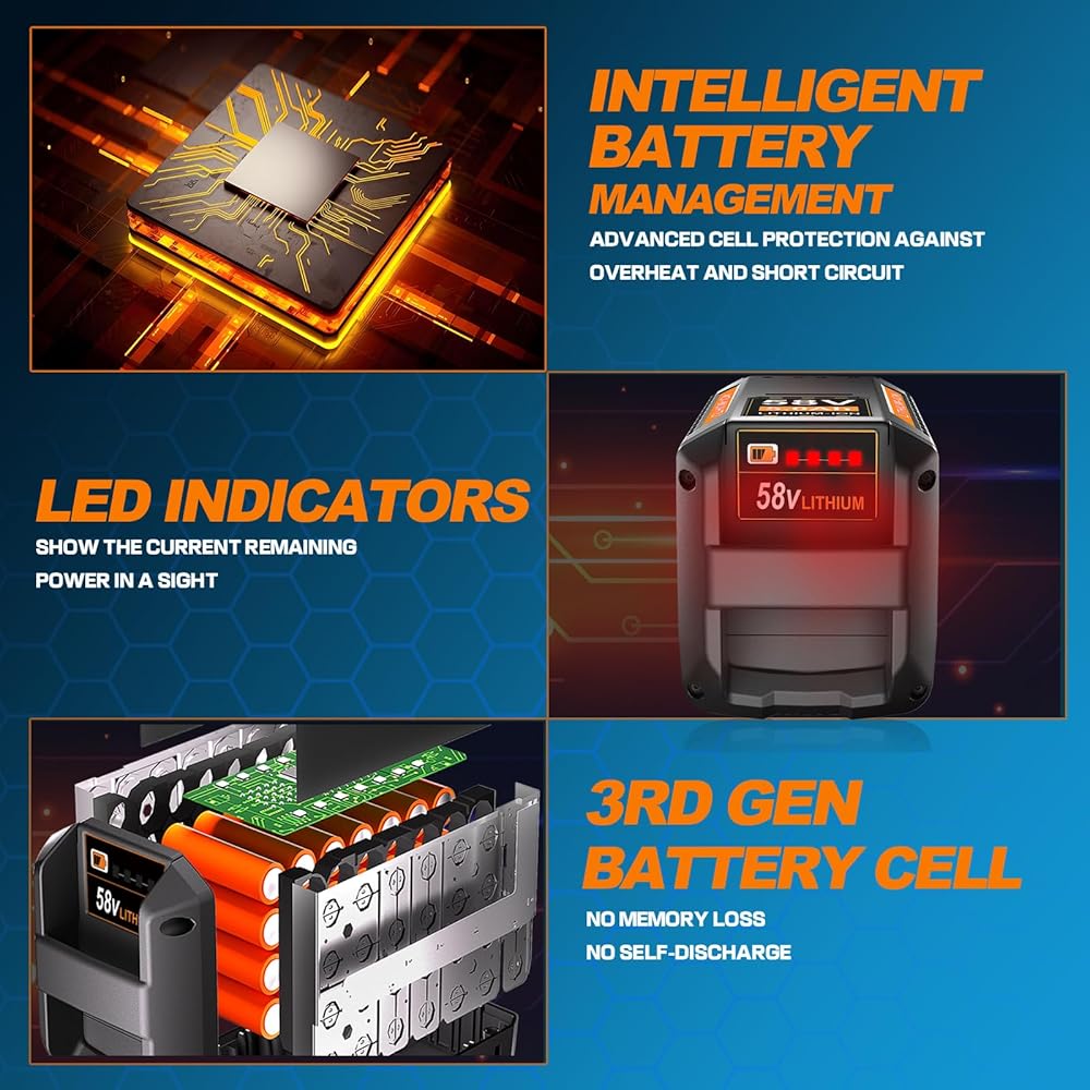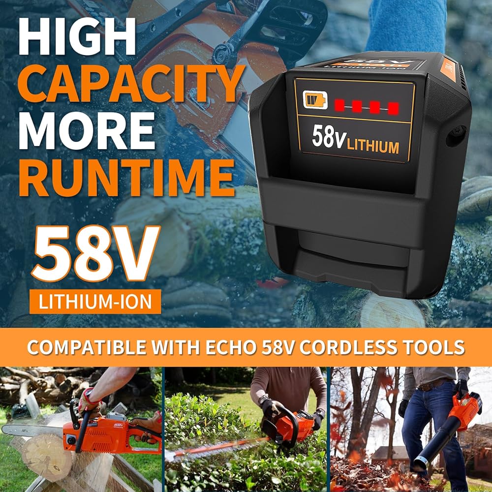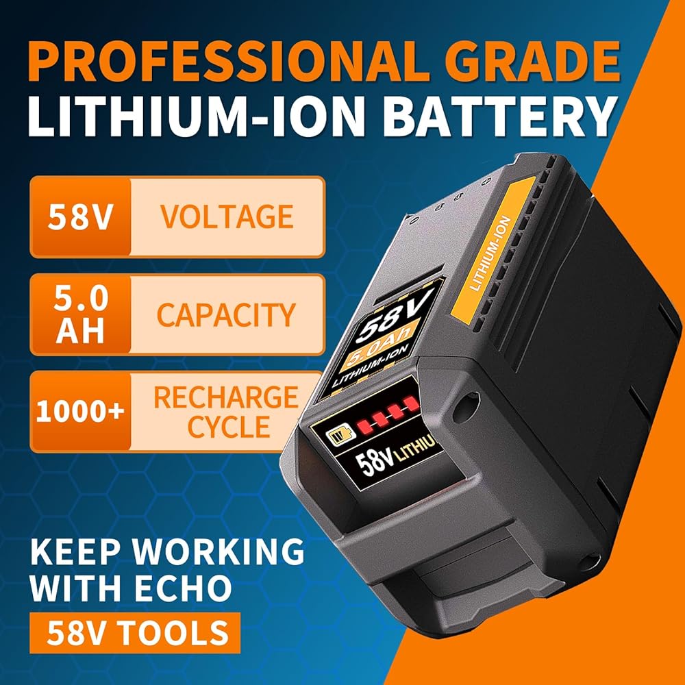 ✔️【توافق ممتاز】 متوافق مع أدوات Echo 58V اللاسلكية مثل منفاخ أوراق الشجر 58V، والمنشار الجنزيري وأداة تشذيب الخيوط وما إلى ذلك. بطارية بديلة لبطارية Echo 58V اللاسلكية. (ليس لجزازة العشب Echo 58v CLM-58V4AH CLM-58VBT)