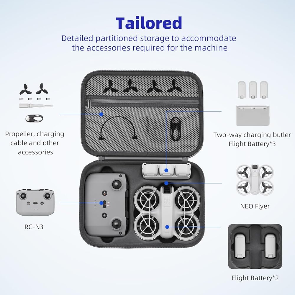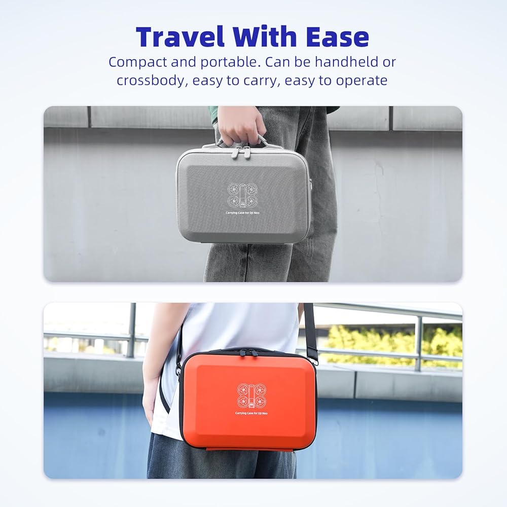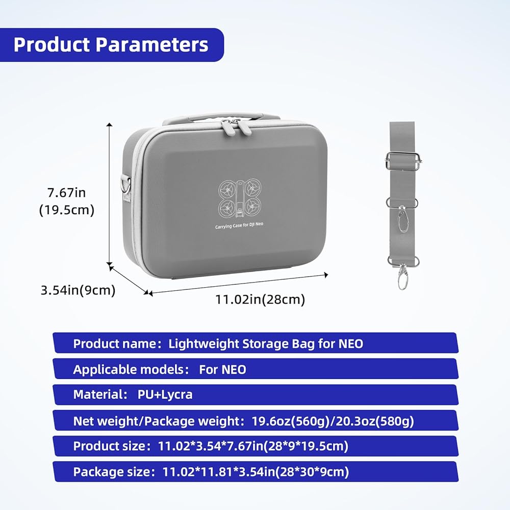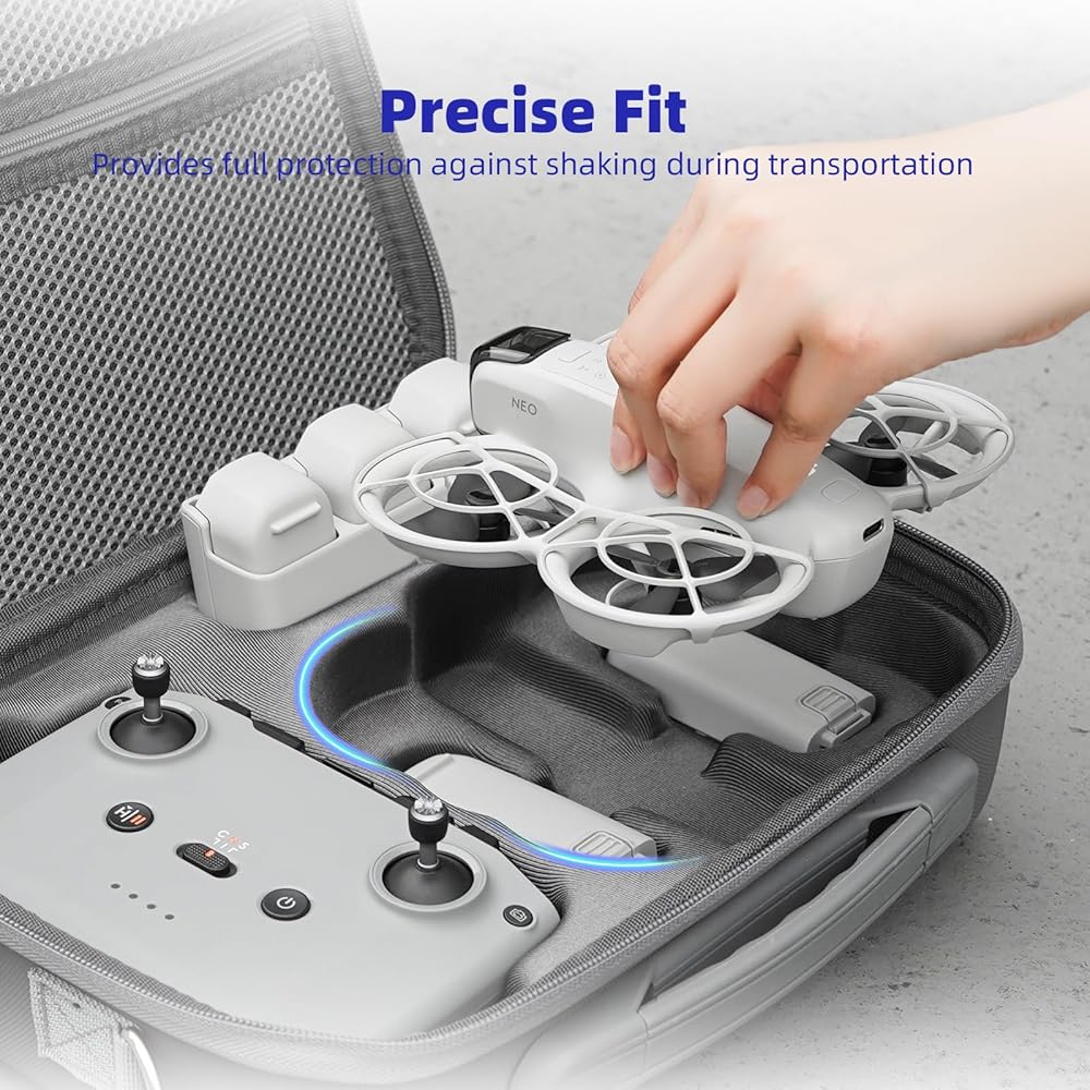 حقيبة حمل لـ DJI Neo، حقيبة تخزين واقية محمولة من البولي يوريثان مع كتف لـ DJI Neo Fly المزيد من الملحقات كومبو، لمركز شحن بطارية الطائرة بدون طيار RC-N3 (رمادي)