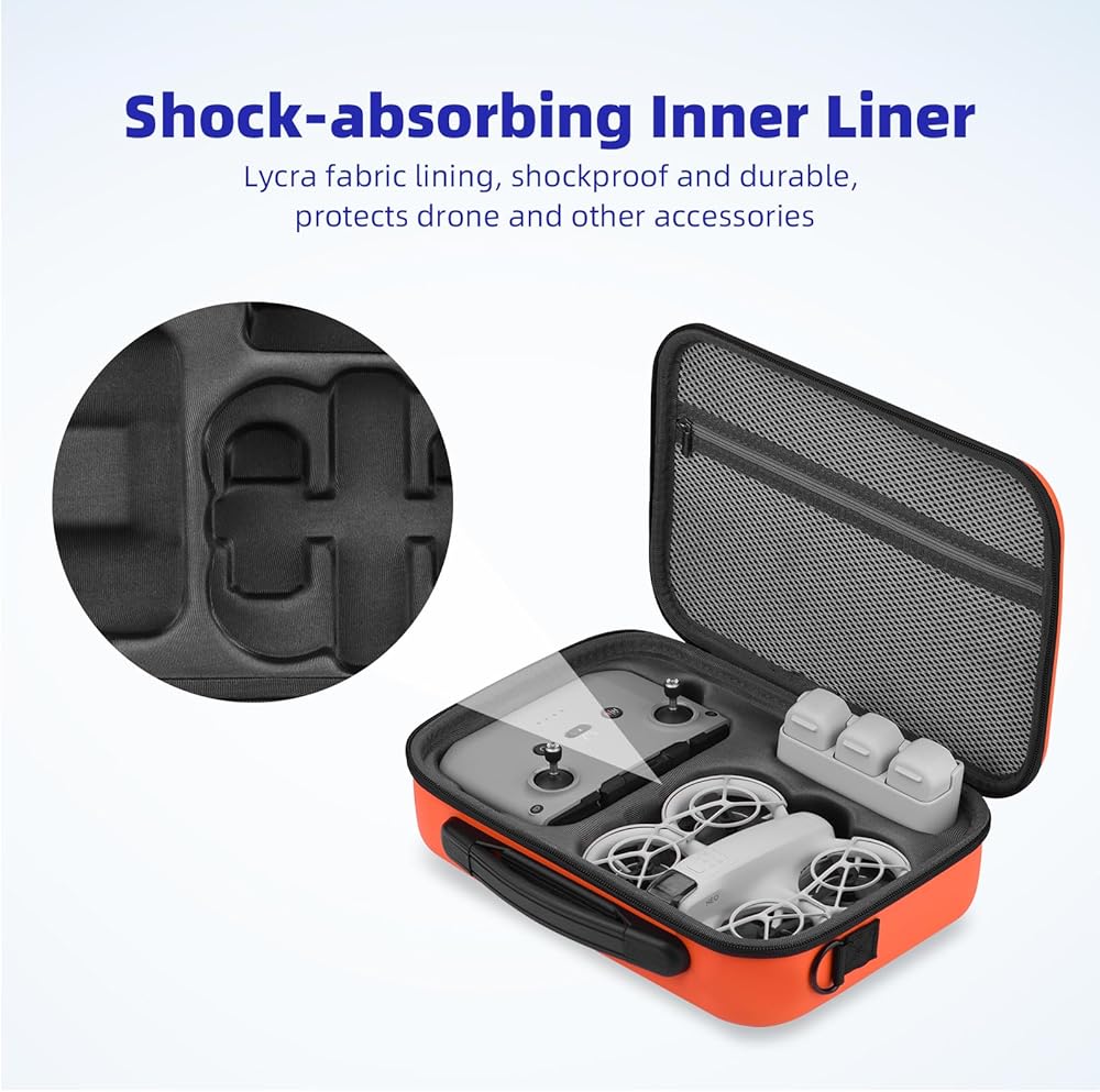 • توافق ممتاز - مصممة خصيصًا لـ DJI NEO، تستوعب حقيبة الحمل هذه 1 × طائرة بدون طيار، 6 × بطاريات، 1 × محور شحن، 1 × وحدة تحكم عن بعد RC-N3. يشتمل الغطاء العلوي على جيب شبكي لتخزين هاتفك والمراوح والمرشحات وكابلات الشحن وأجهزة الشحن الصغيرة وغيرها من الملحقات.