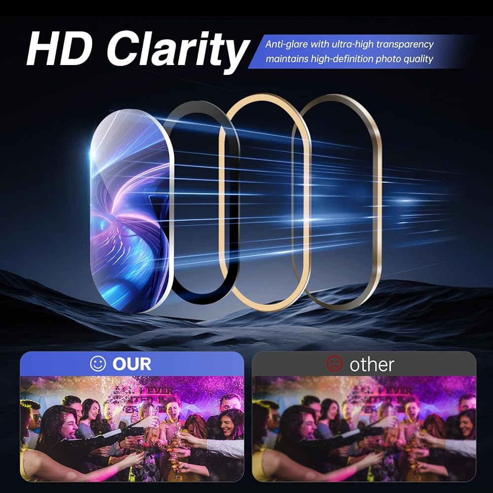 【Easy Installation】The lens protector is using an aluminum alloy ring , the metal frame helps to locate the lens, easy to install. Simply align the protector with the lens and press firmly, no bubbles or white edges, no adhesive residue left when replacing
