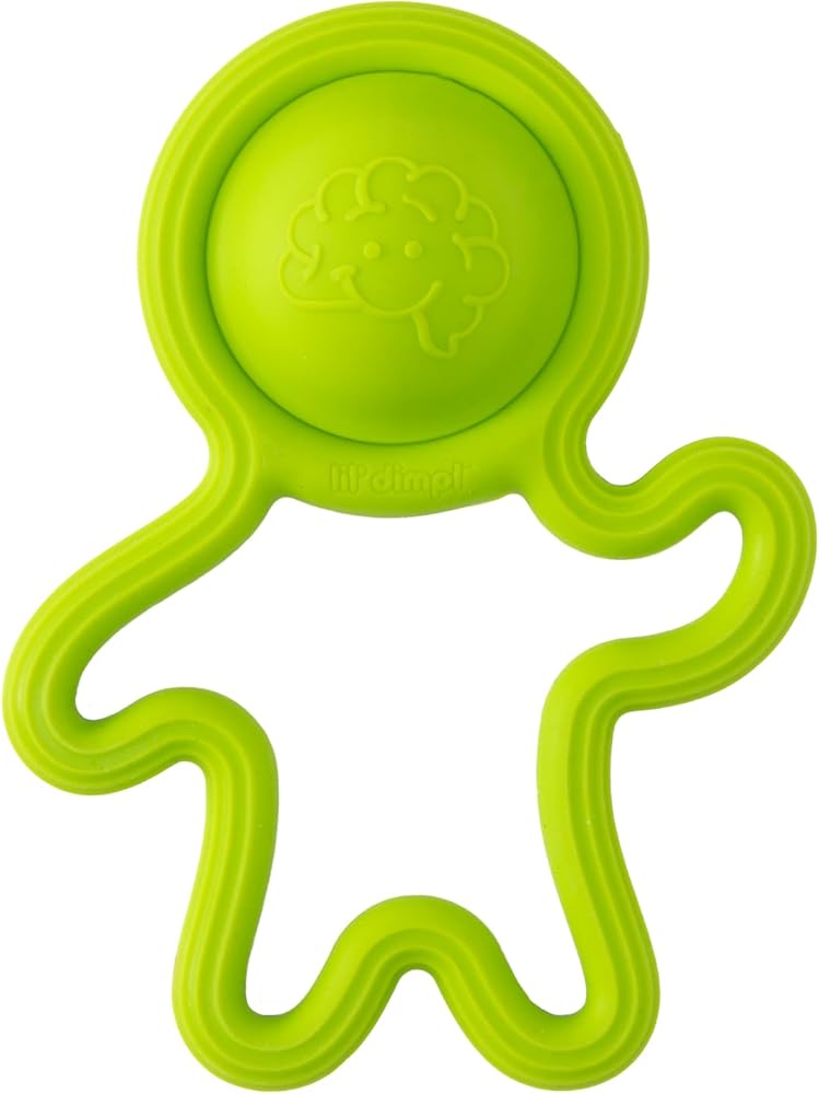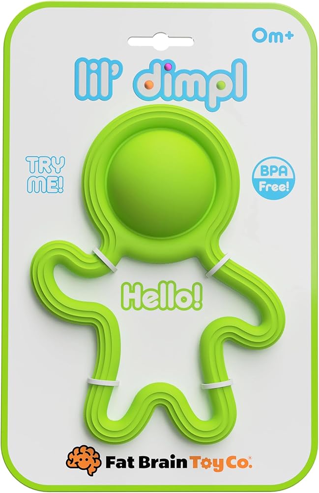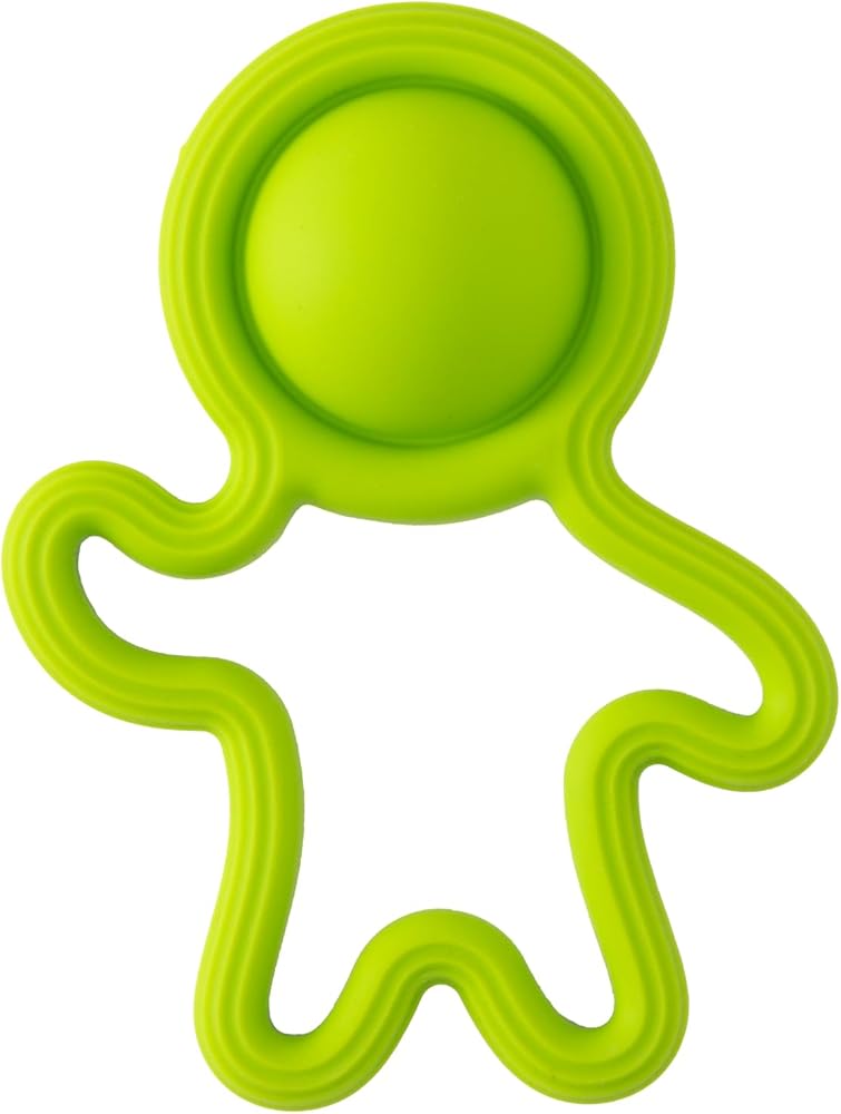 Baby's new best buddy! Made entirely of soft, safe silicone, this squishy little sidekick is soothing for sore gums and fascinating for little fingers to grab, hold, and feel. Built into the big noggin is a delightful dimpl bubble they'll love to poke and pop again and again!