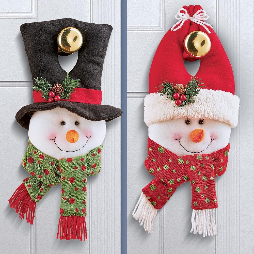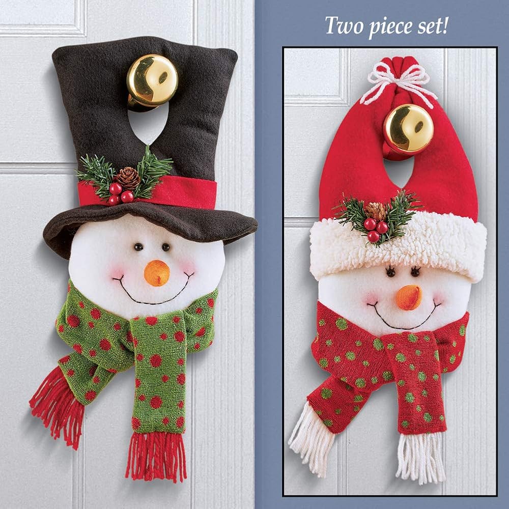 Collections Etc Mr and Mrs Snowman Festive Door Knob Hanger