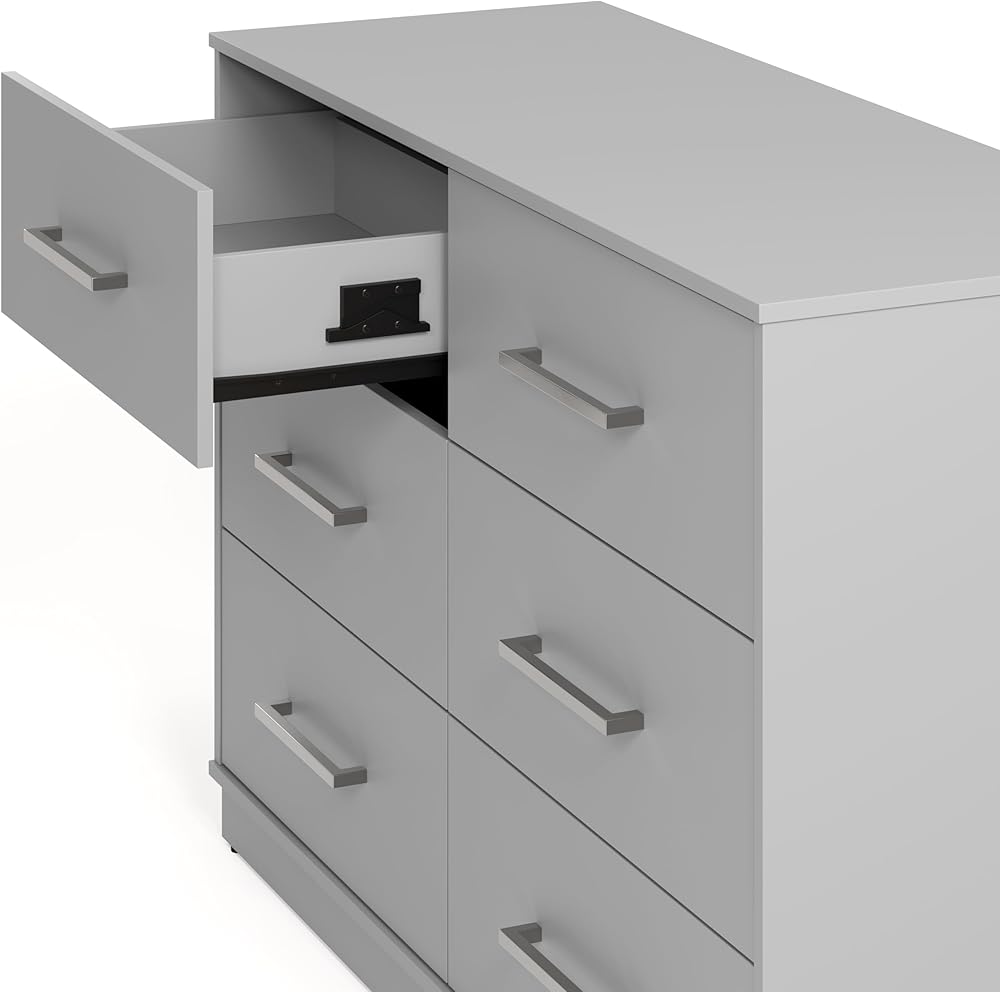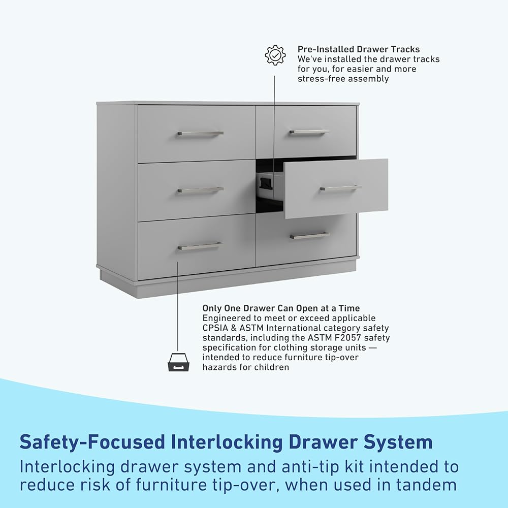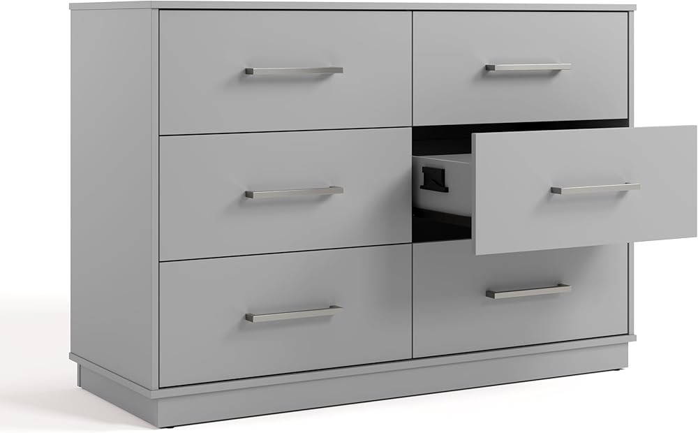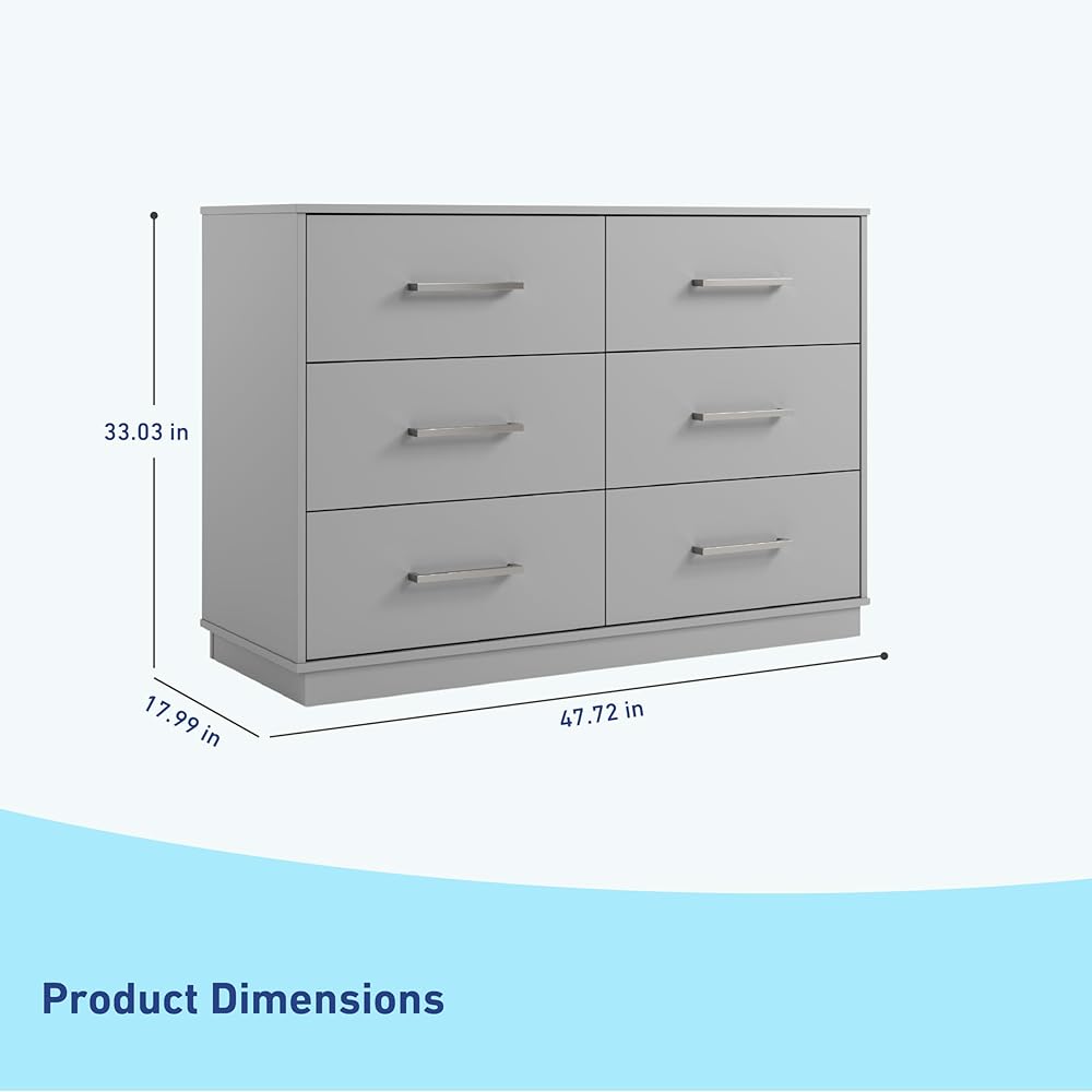 MODERN, STYLISH 6-DRAWER DRESSER FOR BEDROOM AND NURSERY: This dresser offers families a modern storage solution with 6 ample drawers. It's perfect for any nursery or kids' bedroom.