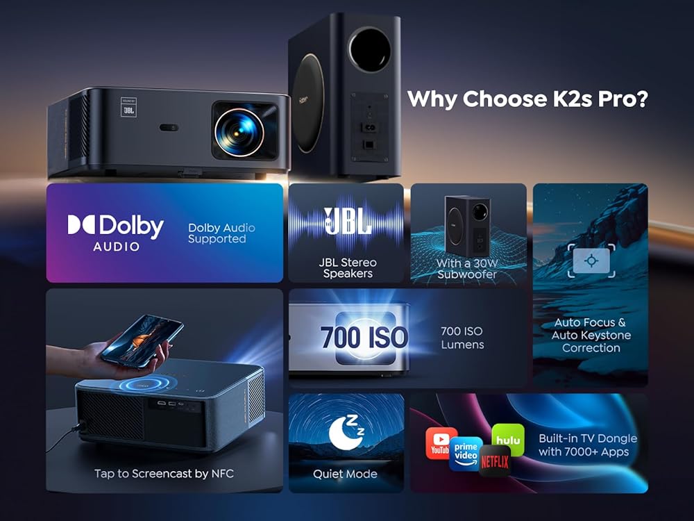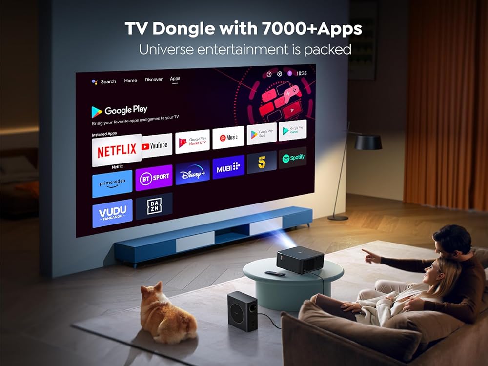 【تلفزيون Google المدمج مع أكثر من 7000 تطبيق】- مرحبًا بك في أرض العجائب السينمائية لجهاز عرض الأفلام Yaber K3! تلفزيون Google المدمج للوصول إلى أكثر من 7000 تطبيق مثل YouTube وNetflix وPrime Video وHulu، يحول جهاز العرض الخاص بك إلى مركز ترفيهي متكامل بغض النظر عن المناسبة. سواء كان حدثًا رياضيًا مثيرًا، أو فيلمًا مثيرًا من أفلام هوليود، أو رسوم متحركة ساحرة ومسلية من ديزني، فإن جهاز العرض المنزلي K3 يلبي جميع احتياجات المشاهدة الخاصة بك.