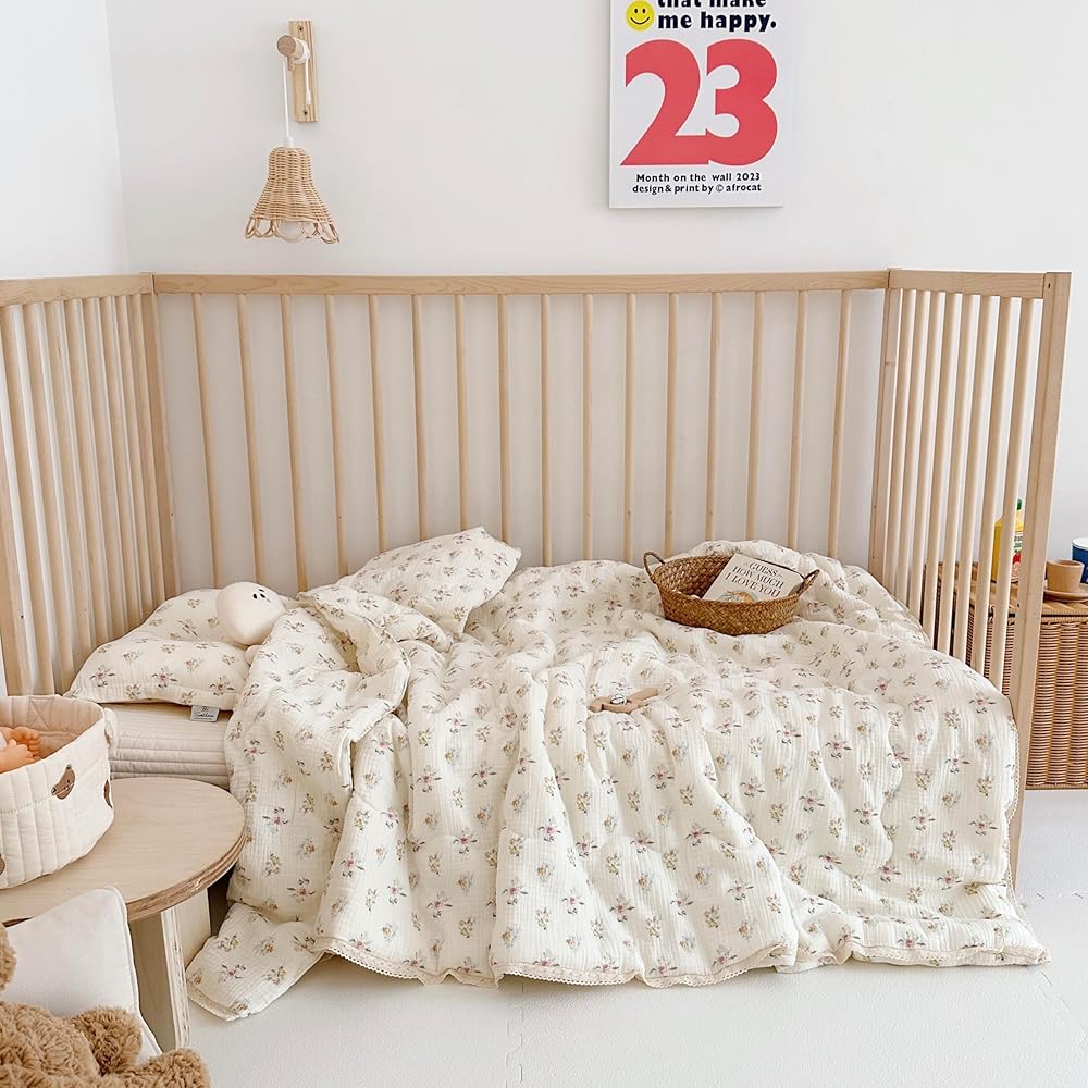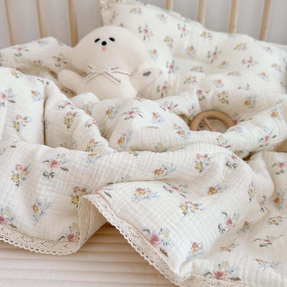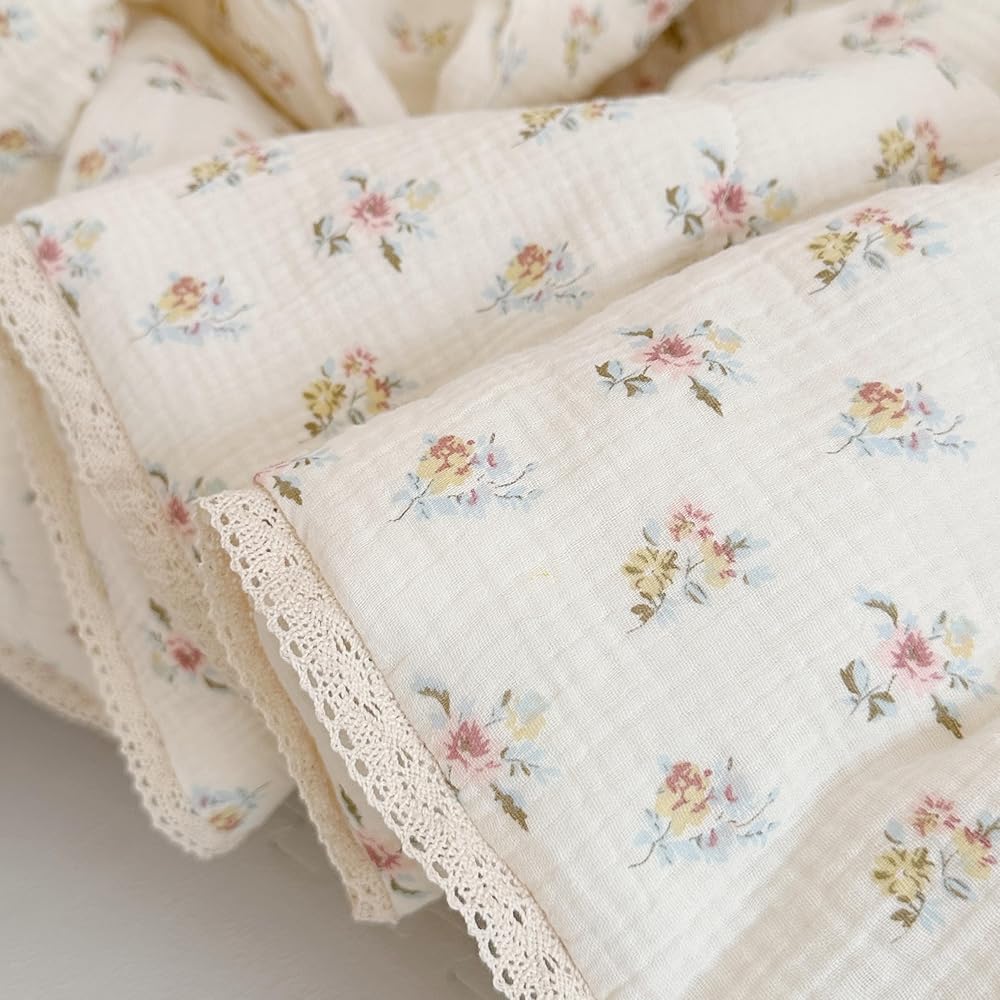 🎁【أنماط زهور رائعة】: النمط المطبوع بالزهور الوردية الجذابة وتصميم الدانتيل يكسر بهتان الألوان الصلبة، مما يجعل بطانية الأطفال/اللحاف الصغير بالكامل أكثر جمالاً وجمالاً. سواء كانت أعياد الميلاد أو العطلات أو غيرها من المناسبات المهمة، فإن بطانية السرير المريحة لدينا هي الخيار الأفضل لك لتقديم هدية لطفلك. لا تقلقي، ستلعب مميزاتها ودورها في رعاية نمو طفلك!