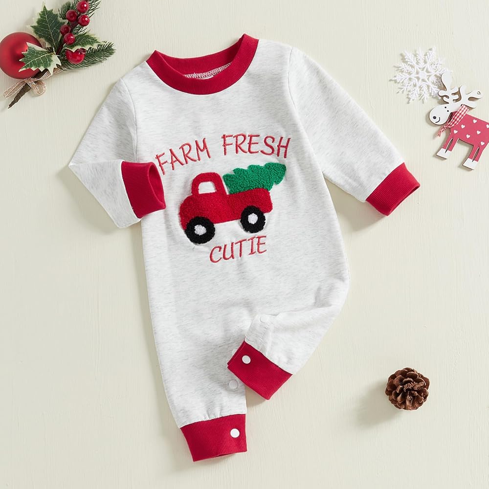 Newborn Baby Girl Boy Christmas Outfit Xmas Car/Gingerbread Man/Elk Romper Long Sleeve Jumpsuit Playsuit 0-18M