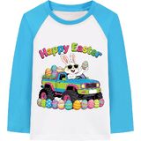 تصميم فريد: قميص علوي بأكمام طويلة للأطفال الصغار في عيد الفصح باللون الأزرق أو الأسود. ملابس رائعة للأولاد والبنات المحبوبين لتتماشى مع السراويل أو التنورة أو السترة. استمتع بأرنب بيضة عيد الفصح، والقطار، والحفارة، والشاحنة العملاقة، واستمتع بيوم عيد الفصح السعيد!