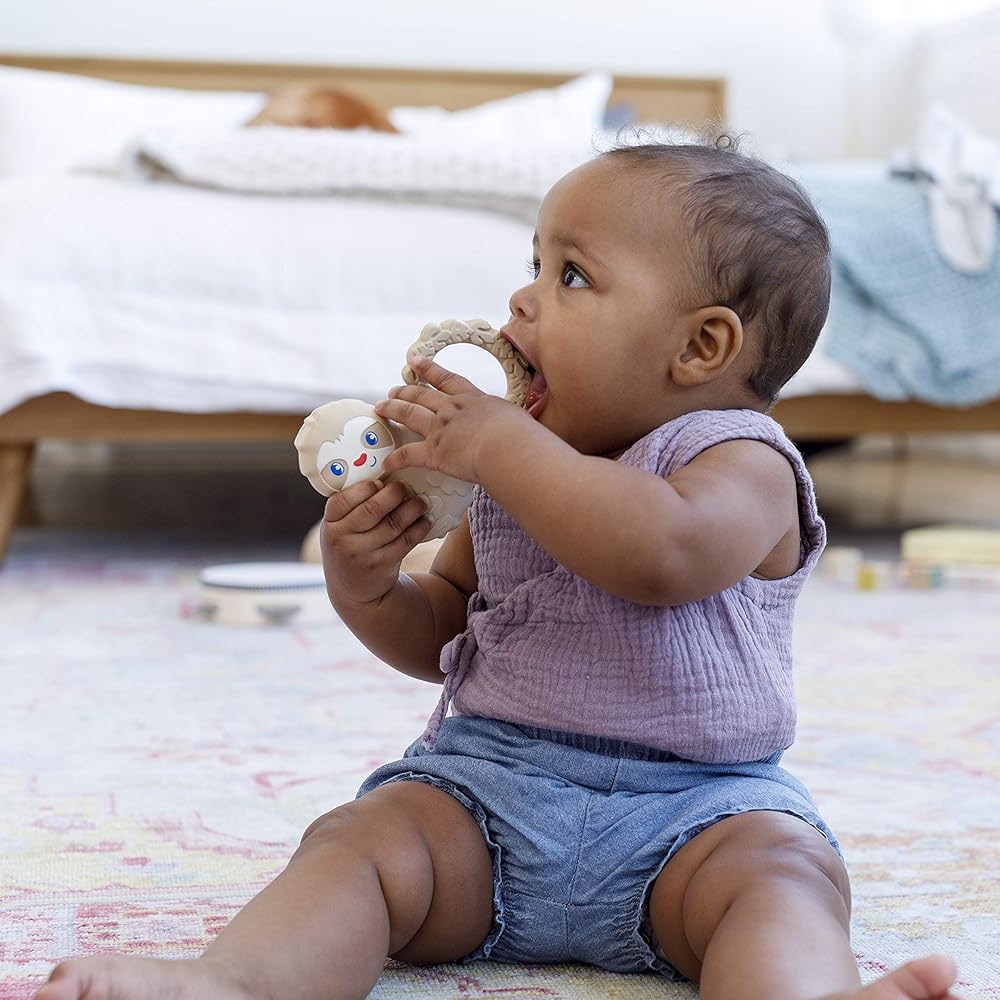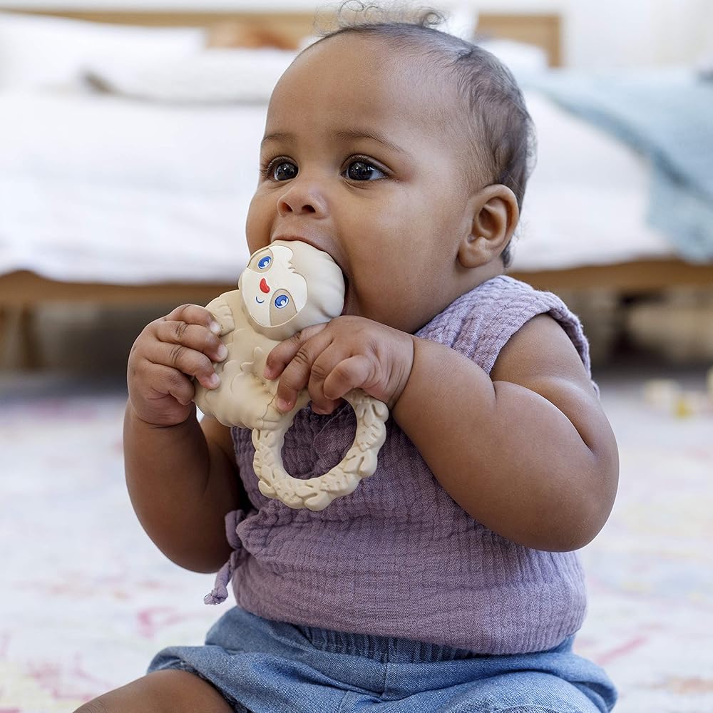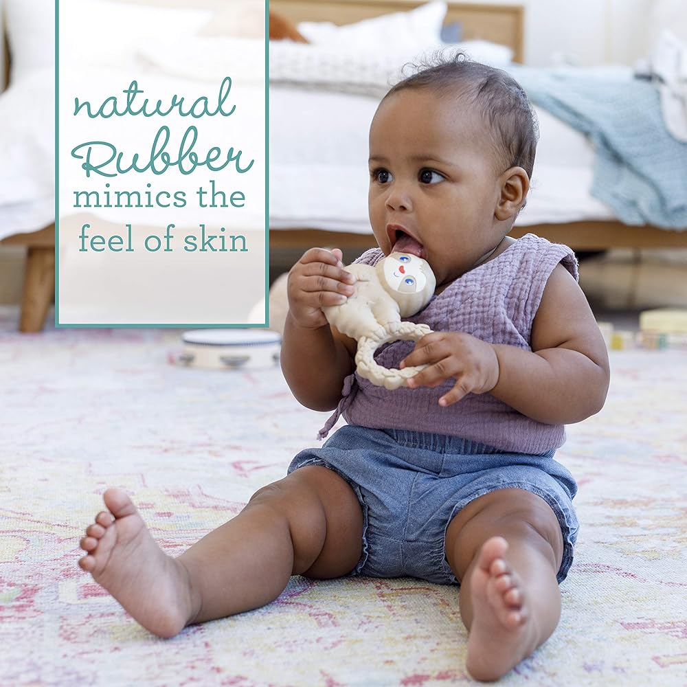 Material benefits: BPA-free, 100% natural rubber, eco-friendly and biodegradable. Closely mimics the feel of skin making it a natural go-to for babies. Also PVC, phthalate and petroleum free.