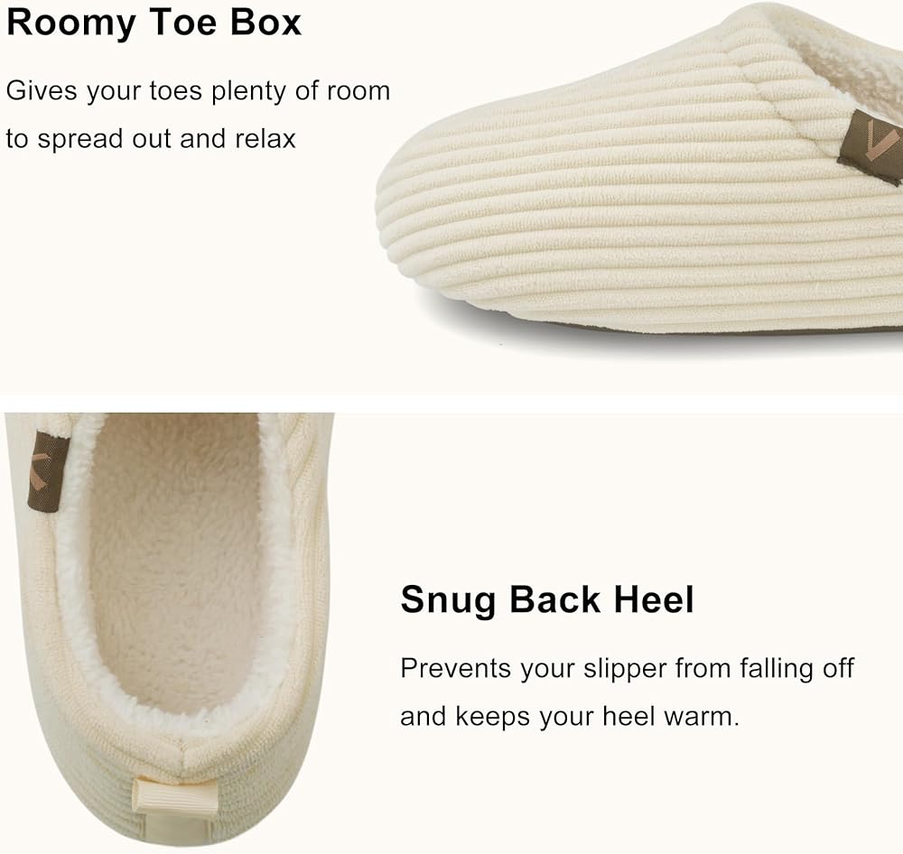 • دافئ وناعم: مثل لف قدميك في سحابات دافئة ورقيقة، يوفر هذا الجزء العلوي الراحة القصوى. يضيف الفراء المجعد المصمم خصيصًا المزيد من الدفء في الطقس البارد. التصميم الكلاسيكي سهل الارتداء يجعل هذه الأحذية مثالية للارتداء طوال اليوم، سواء كنت تسترخي في المنزل أو ترتدي ملابس الاسترخاء أو البيجامات أو أطقم الرداء، مما يوفر الأناقة والراحة.
