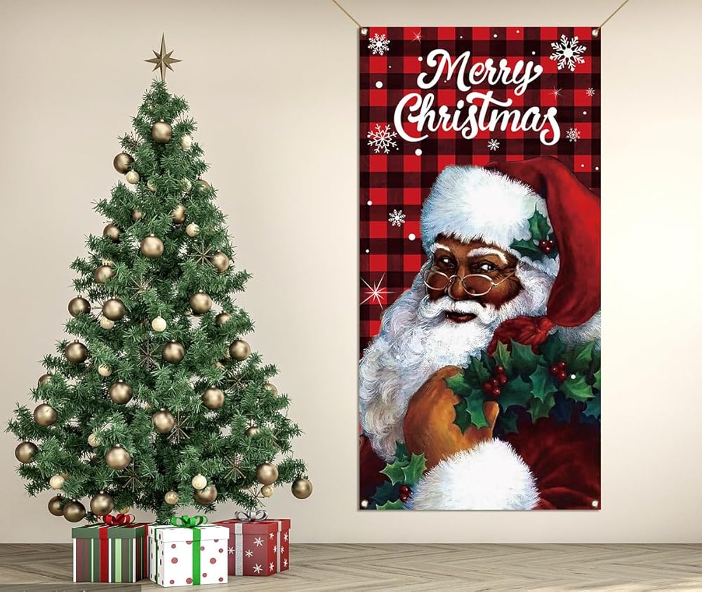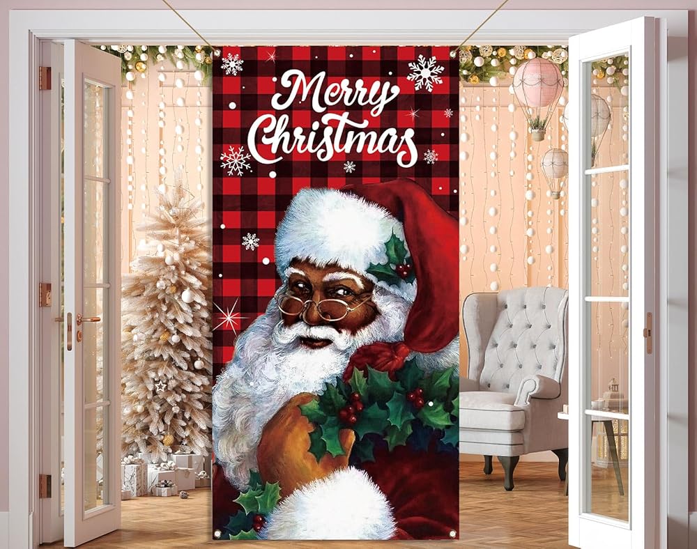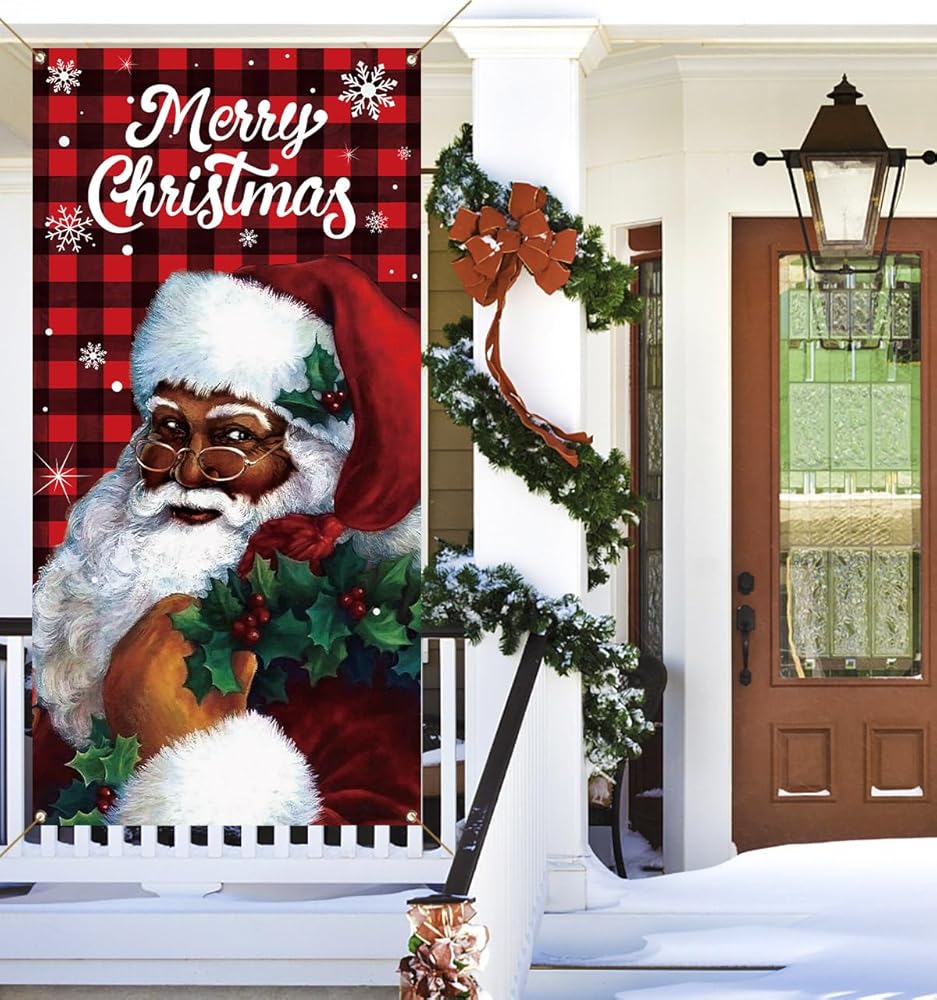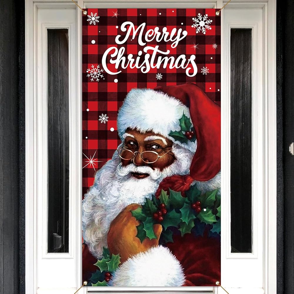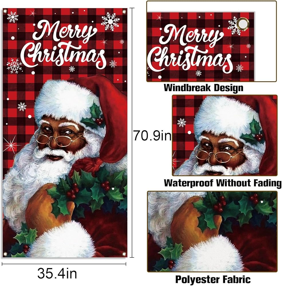 غطاء باب لعيد الميلاد الأمريكي الأفريقي من Nepnuser، زينة سانتا كلوز سوداء لعيد الميلاد والشتاء وحفلات توريد الحفلات، خلفية للباب الأمامي، لافتة معلقة