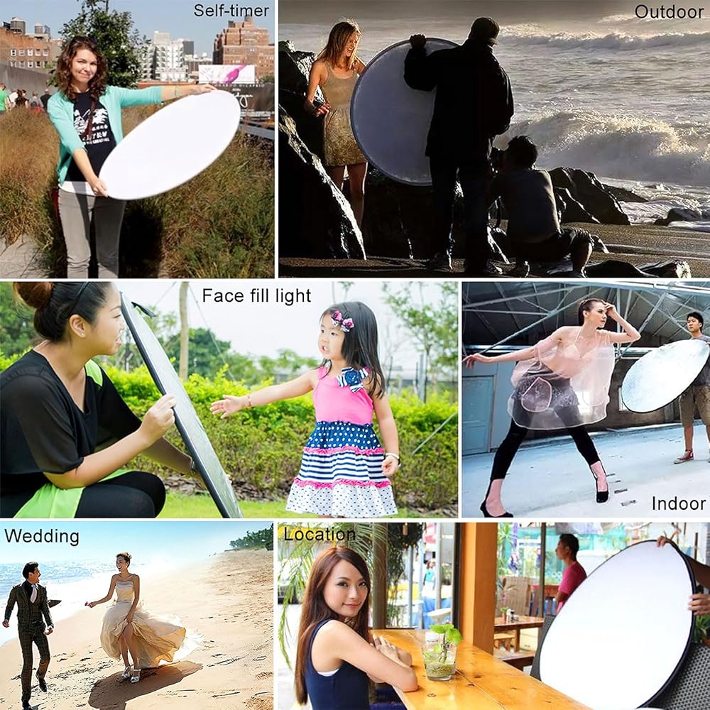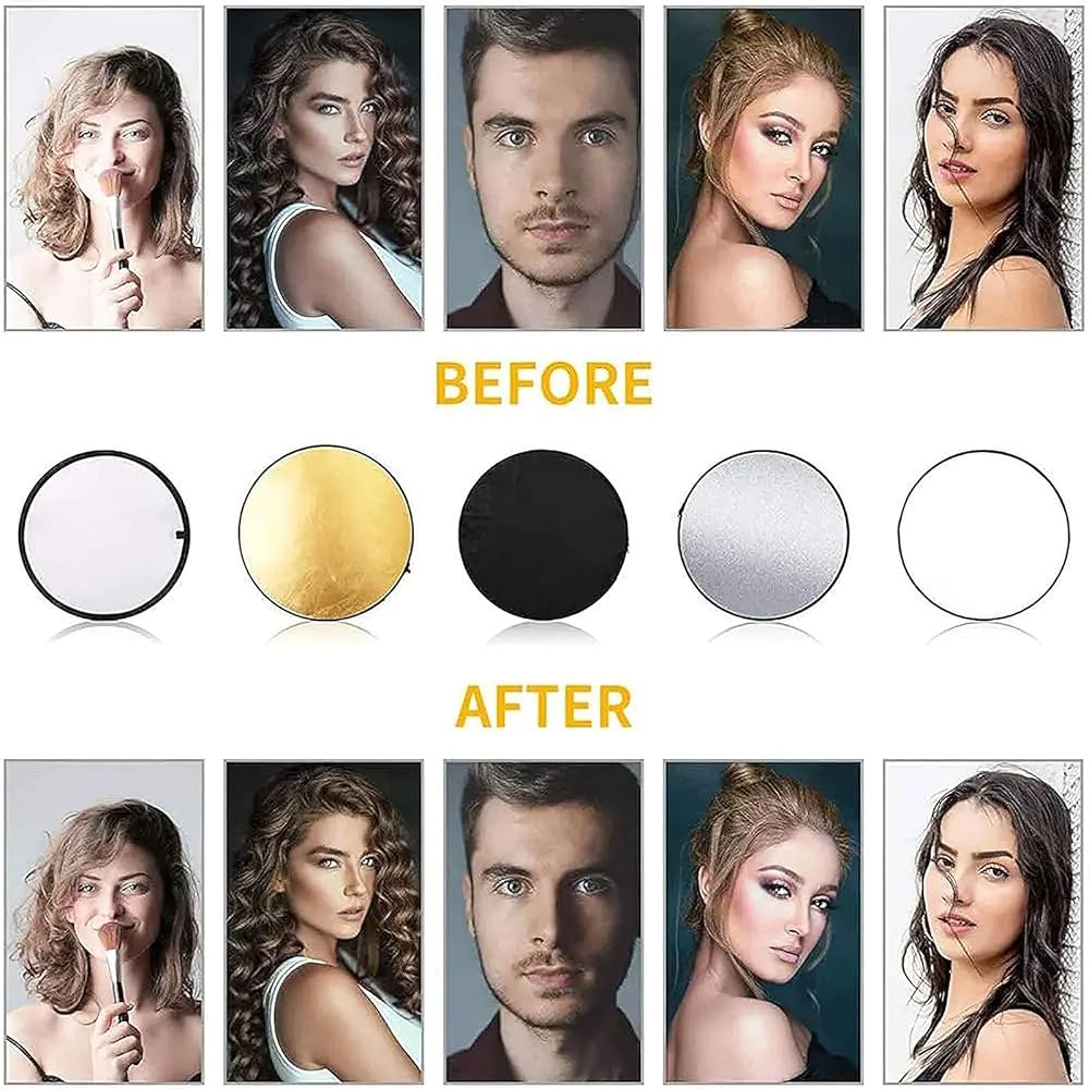 • 5-In-1 Lightweight Reflector: Includes gold, silver, white, black, and translucent