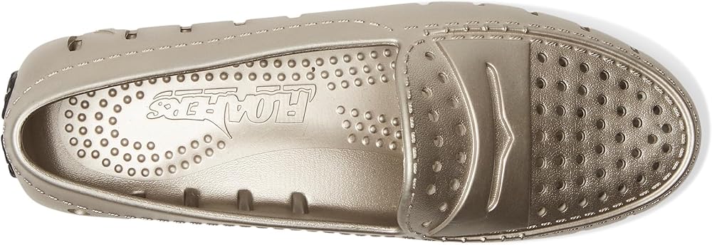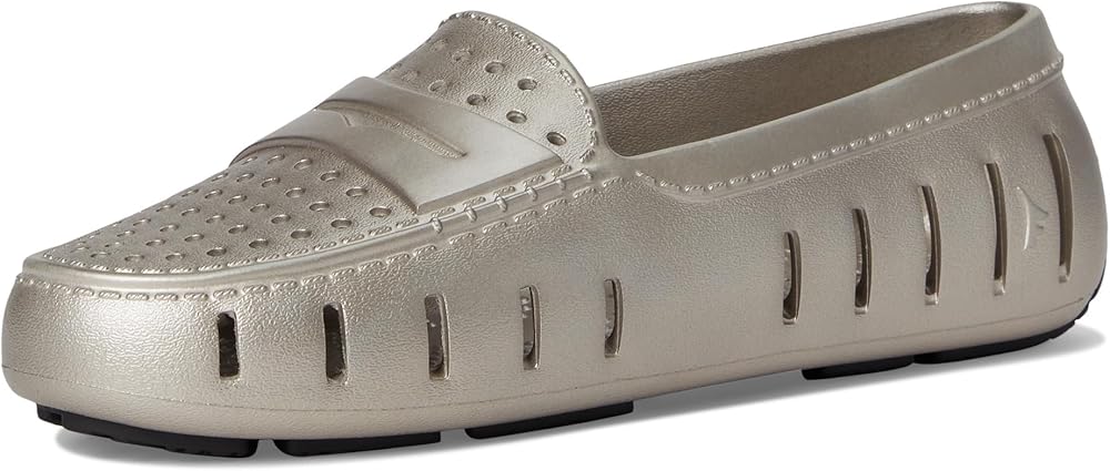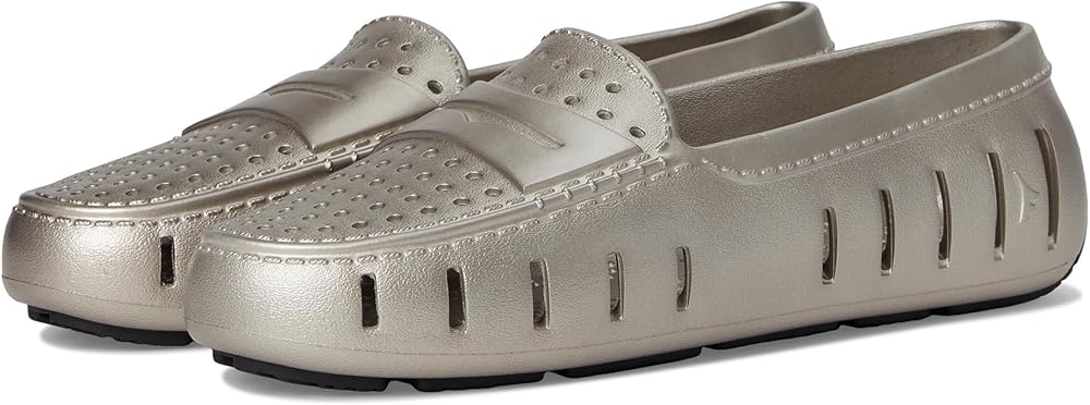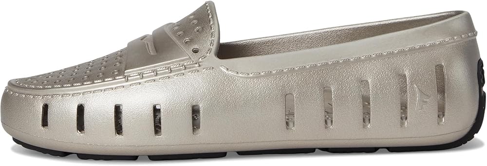 Introducing the Floafers Metallic Posh Driver: Reimagined for unmatched comfort, fit, and style. Experience the evolution of elegance, tailored for the journey ahead. Elevate your style with the advanced 360-degree ventilation that keeps feet cool and helps water and debris drain away quickly. Also, a massage-pod footbed with enhanced arch support offers additional comfort. Ethylene vinyl acetate upper. Unlined construction. Crafted from the renewable sweetness of sugar, these shoes pave the way for a greener future by reducing reliance on fossil fuels. Water-friendly, buoyant, and easy to clean. Pull-on style. Low-top, round toe silhouette. Synthetic rubber outsole.