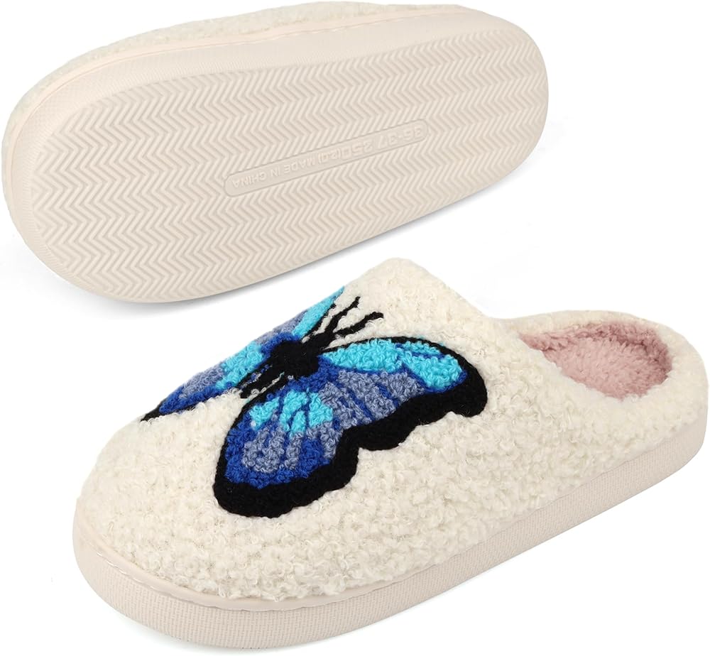 - الجزء العلوي من الشباشب الفخمة تمت حياكته بأنماط لطيفة من الفراشات والأجانب والكلاب والقطط والكسلان وما إلى ذلك.