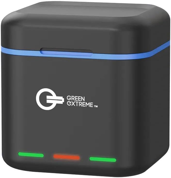 • TRIPLE BATTERY POWER: The Green Extreme Triple Battery Charger for GoPro Hero 9, 10, 11 & 12 charges three batteries at once, features smart LED indicators for real-time updates, and keeps your GoPro ready for nonstop action.